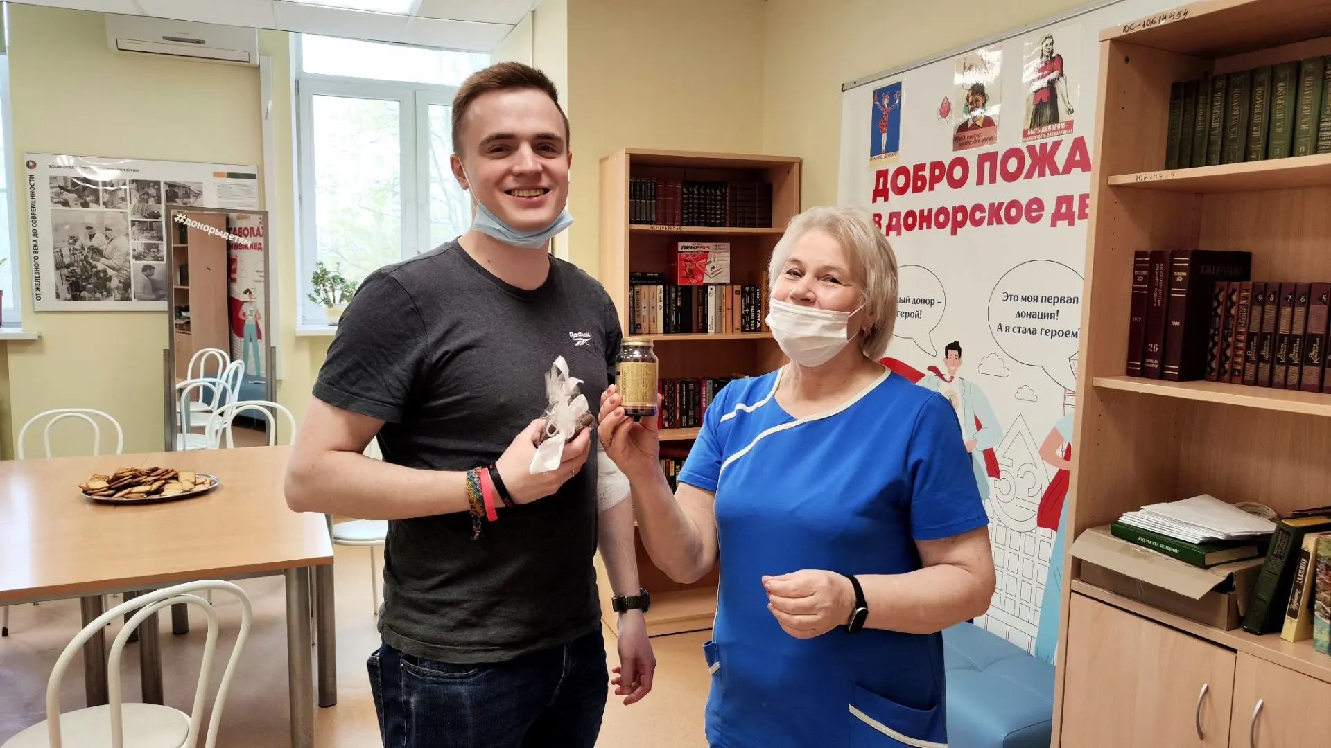 С Климом из Красногорска, почетным донором Москвы (на фото). Сегодня он принимает поздравления не только с днем донора, но и с днем рождения! У него за плечами 11 сдач цельной крови, 3 плазмы и 11 доз тромбоцитов. «Когда дают отвод — расстраиваюсь. Организм уже привык к темпу и „просит“ ещё, процесс очень затягивает. Анализы только лучше стали». Клим агитирует друзей и коллег, хотя честно признаётся: ту эйфорию, о которой говорят другие, ощущает скорее как спокойную привычку к доброму делу. А начиналось все банально 4 года назад: «Предложили на работе, а мне как раз не хватало одного дня, чтобы склеить отпуск».
