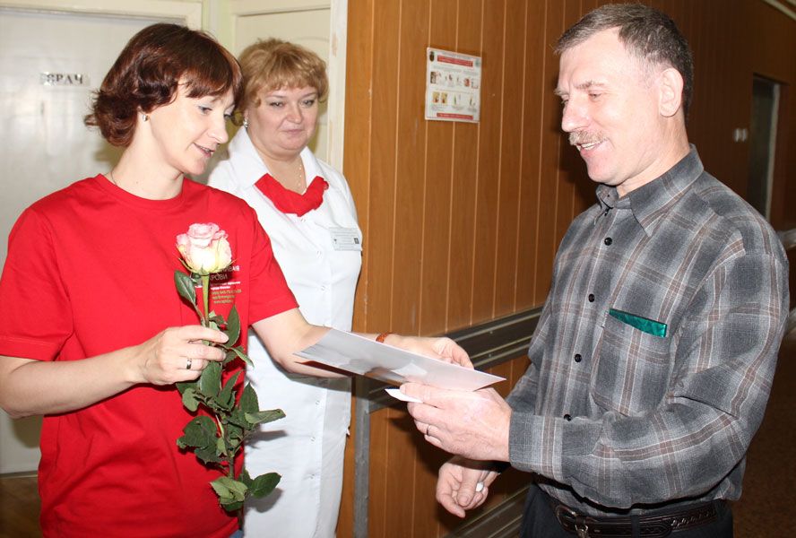 Всем добровольным донорам, принявшим участие в акции, сотрудники больницы в знак благодарности дарили цветы и грамоты.