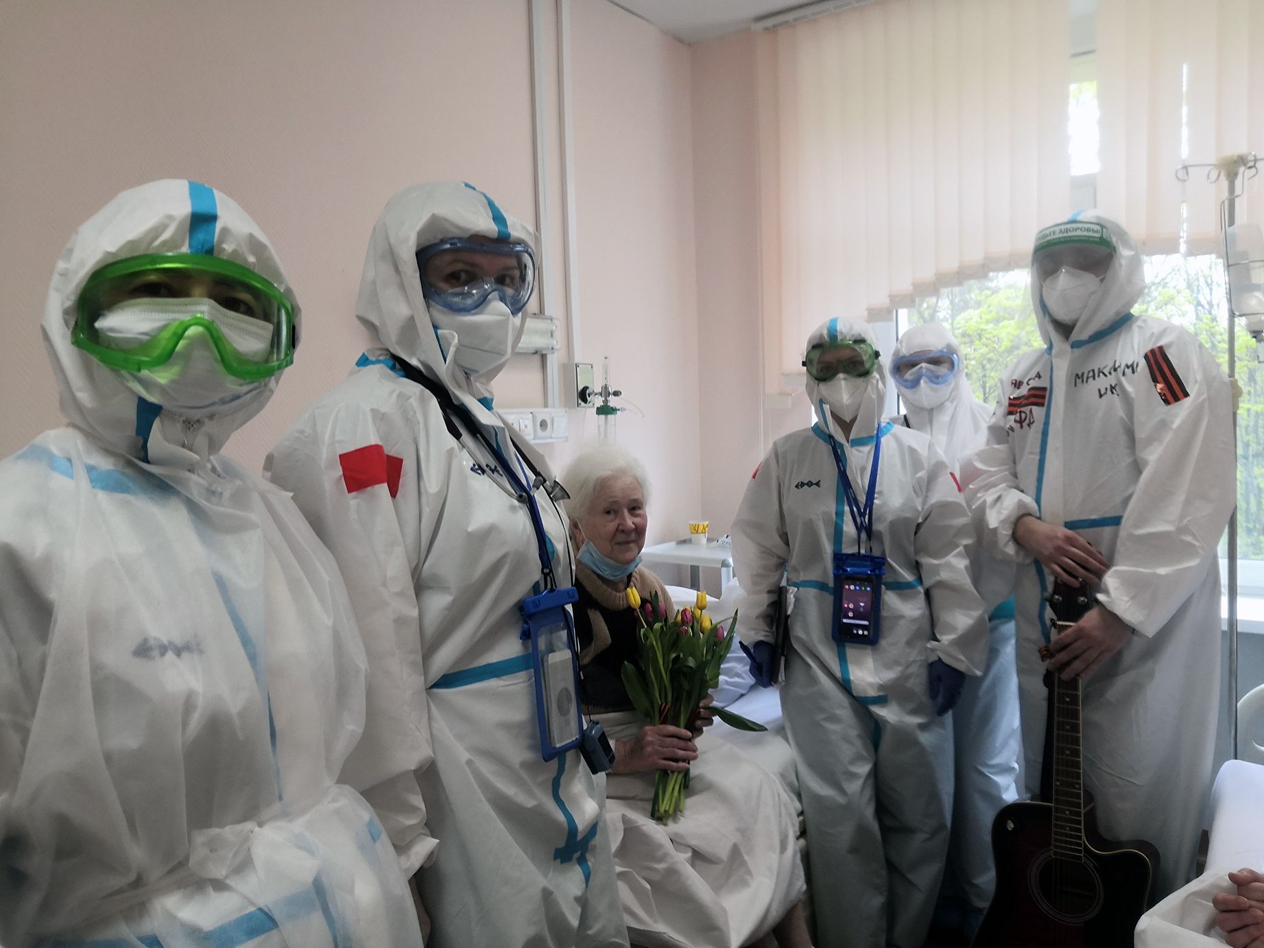 Мы сегодня поздравляли в отделениях пациентов, которые хорошо помнят, что такое война. Дарили цветы, пели песни военных лет. Солдаты и дети той страшной войны, дожив до преклонных лет в здравии, они сегодня воюют с другим противником - с коронавирусом.