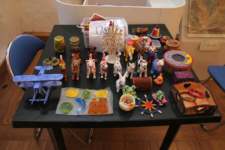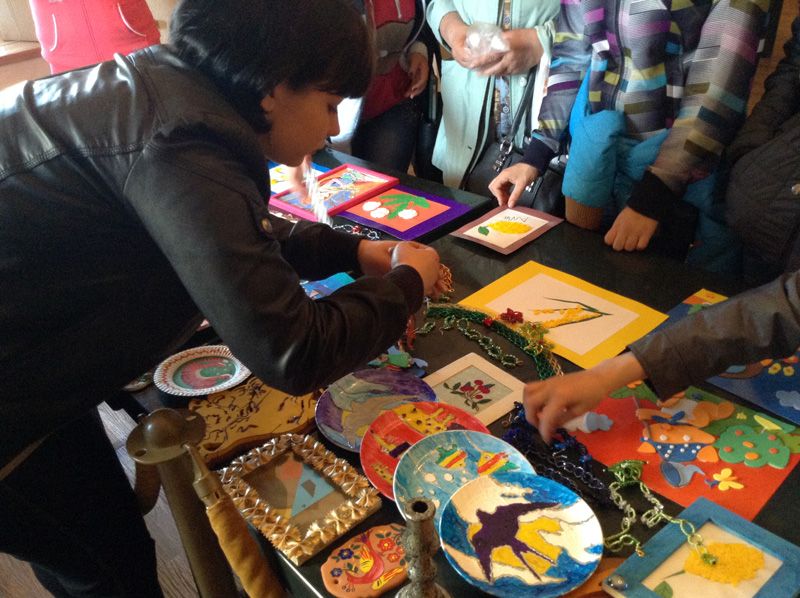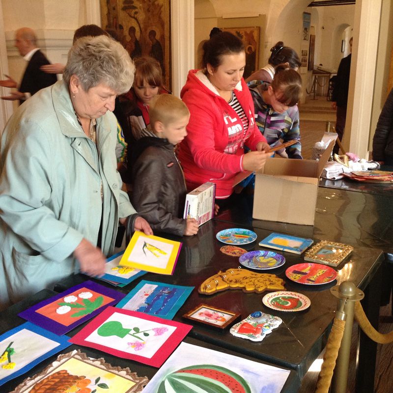 На выставке-ярмарке каждый гость праздника мог купить художественные изделия, выполненные руками школьников и воспитанников детских домов. Были представлены самые разные образцы детского творчества: керамические статуэтки, мыло ручной работы, игрушки, расписные шкатулки и настенные тарелки, фоторамки, картины, украшения из бисера и много других самых разных сувениров, созданных в единственном экземпляре. Средства, вырученные от продажи изделий на этой ярмарке, пойдут на обустройство Храма св. Георгия Победоносца при филиале Центрального военного клинического госпиталя им. А.А. Вишневского № 3.