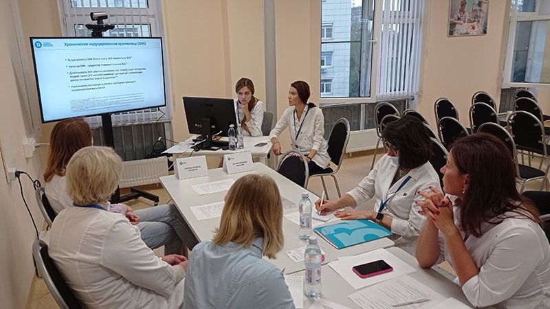 В мультидисциплинарной сессии — разбор клинических случаев коморбидных пациентов — приняли участие наши врачи терапевты, ЛОРы, пульмонологи, гематологи, нефрологи, ревматологи, эндокринологи.