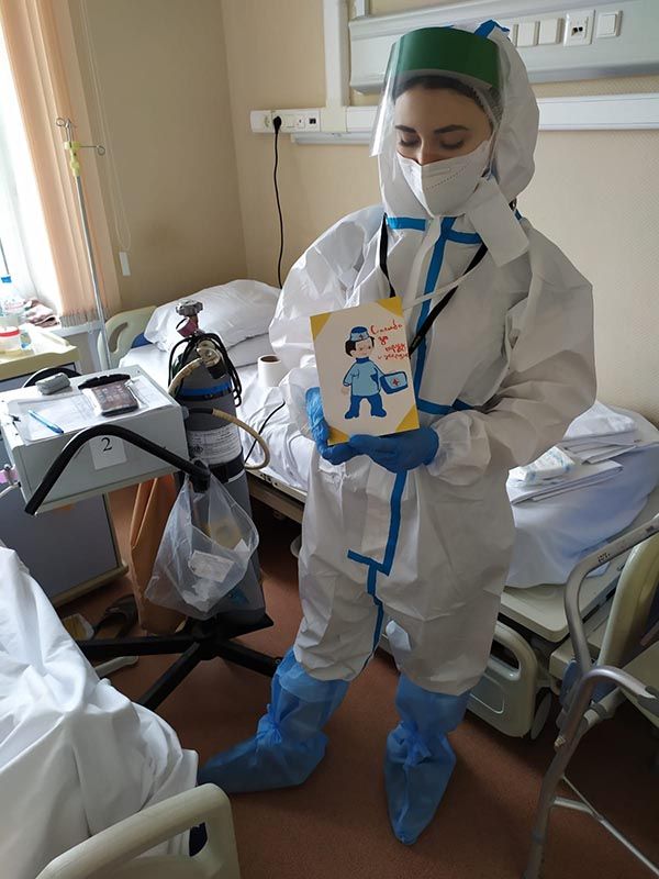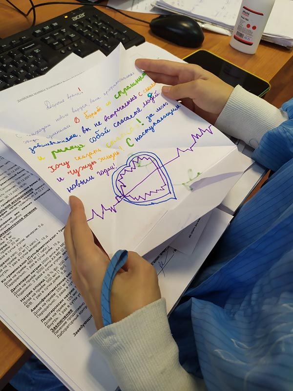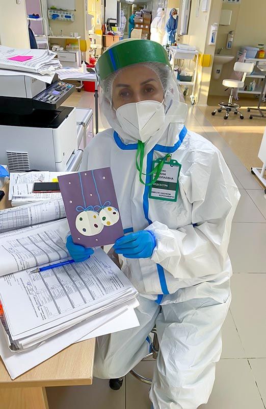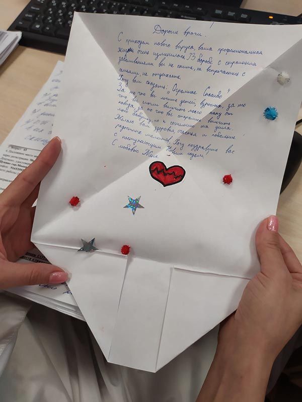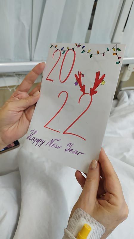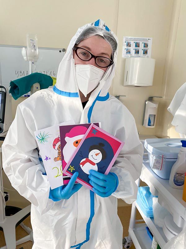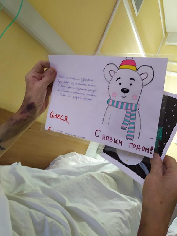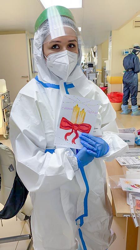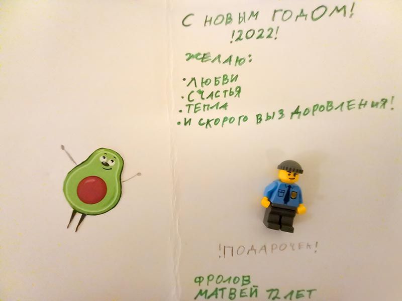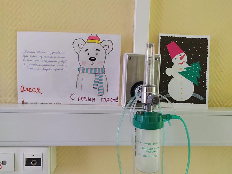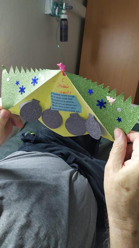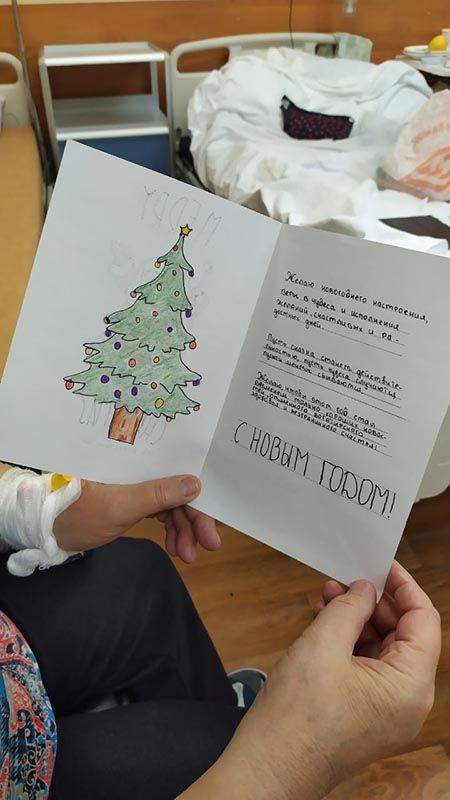 В больнице есть прекрасная новогодняя традиция: ученики медицинских классов готовят поздравления с Новым Годом для пациентов и сотрудников больницы. Ковид внес небольшие изменения в протокол, но результат в итоге намного превосходит возможный в условиях ограничений, и вы можете в этом убедиться. В нашем фотоальбоме сегодня - новогодние открытки в руках пациентов и сотрудников больницы.