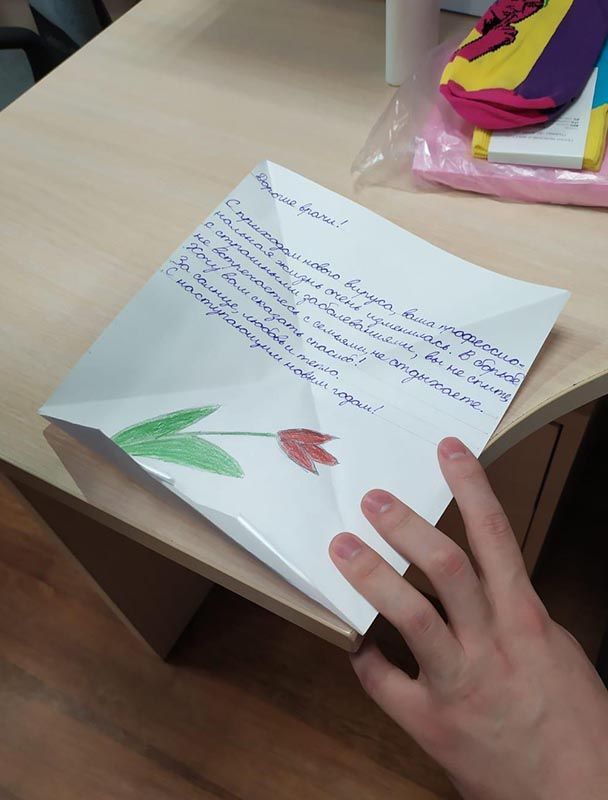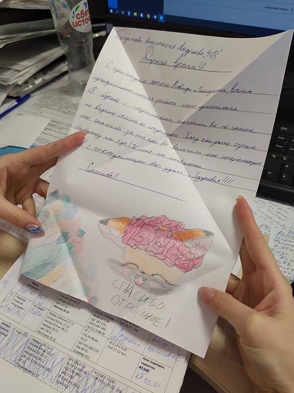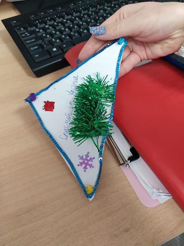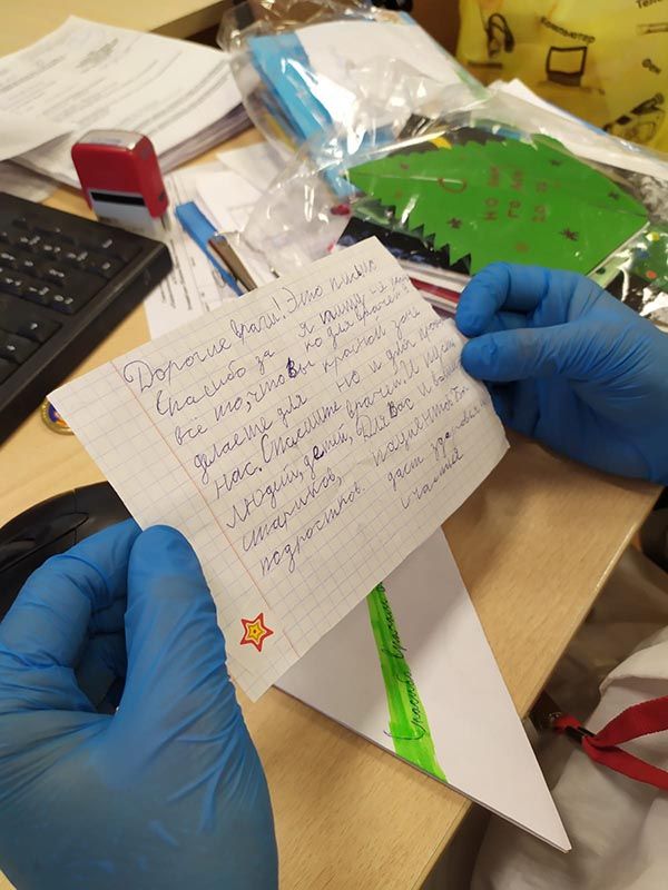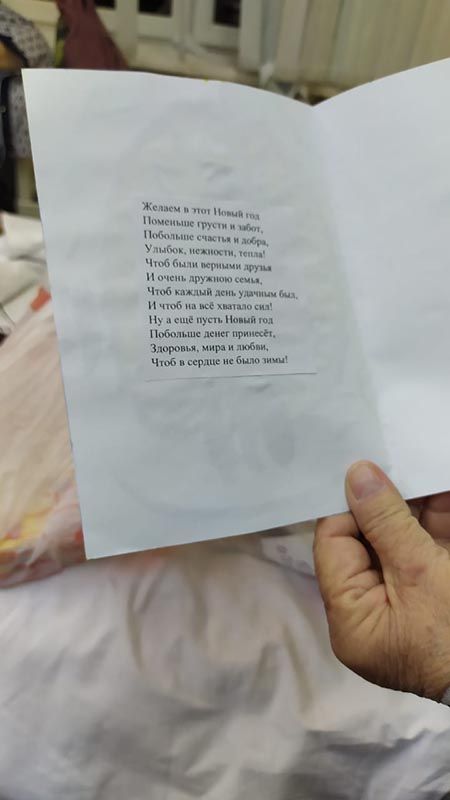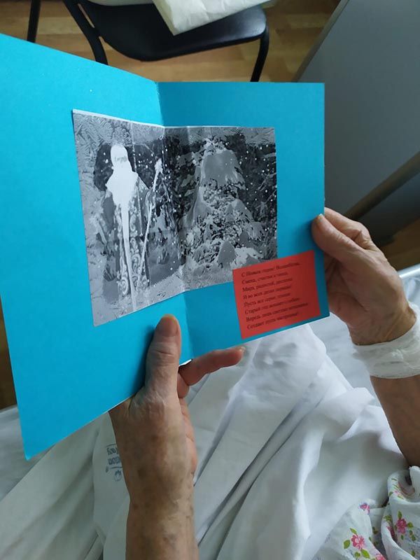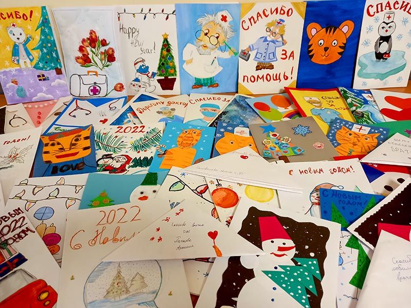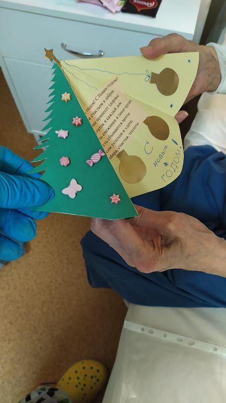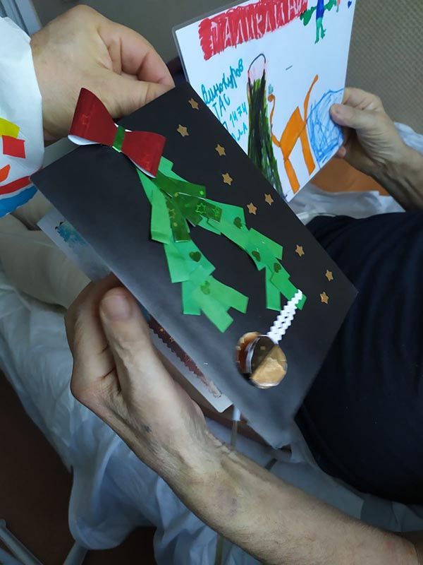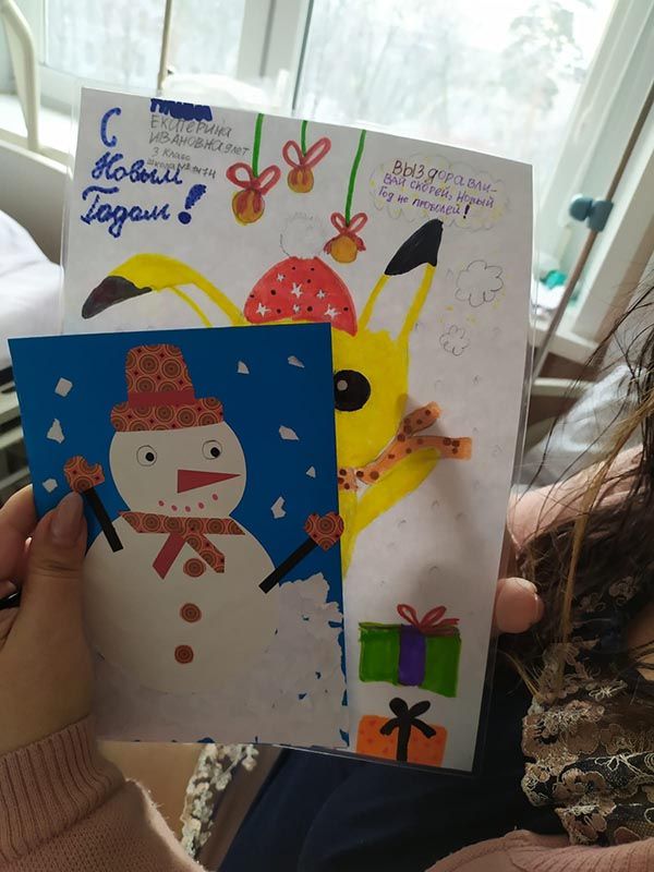 Настоящее чудо смогли сотворить ученики Курчатовской школы и школы N1505 "Преображенская". А доставляли поздравления в отделения в течение всех каникул наши волонтеры, которые, кроме всего прочего, поздравили каждого без исключения пациента – открытками, мандаринами и другими полезными в больнице сувенирами.