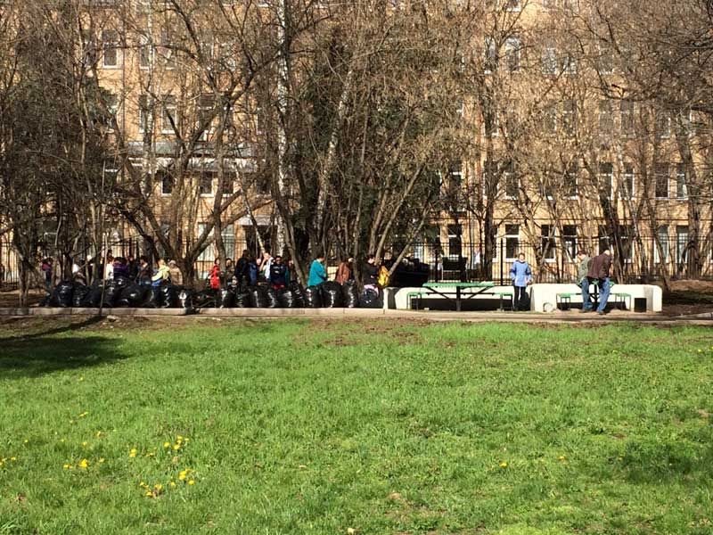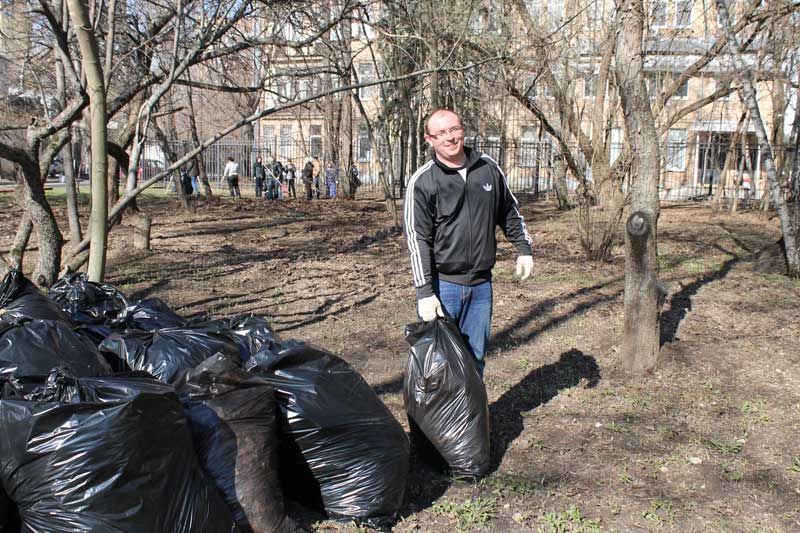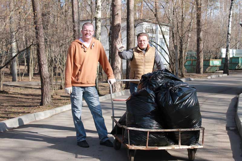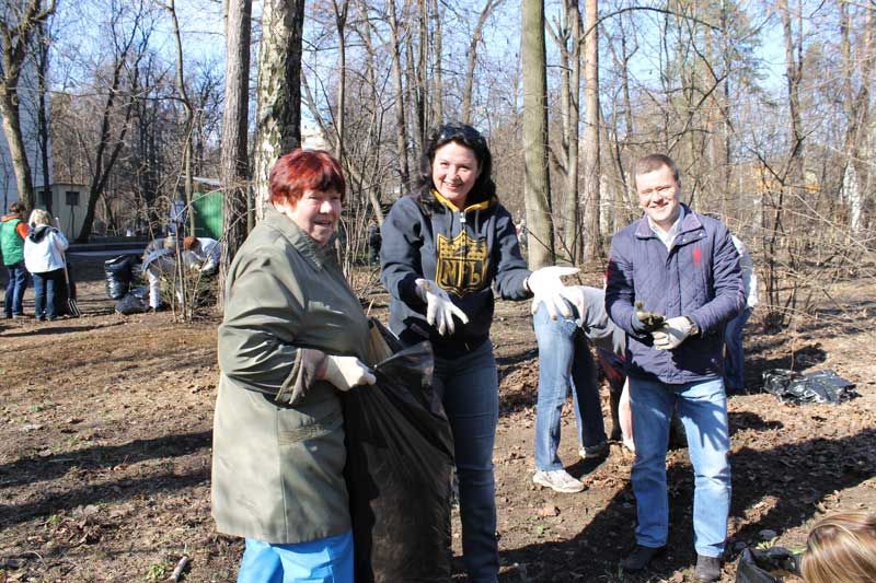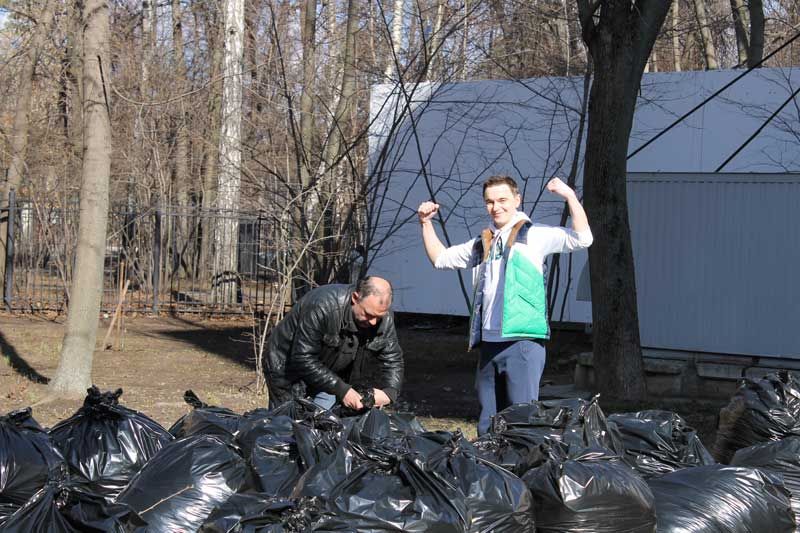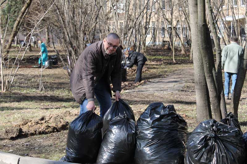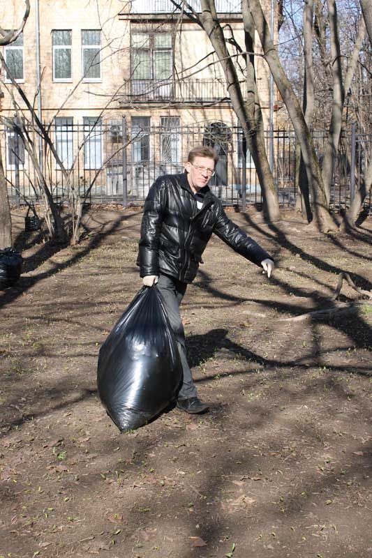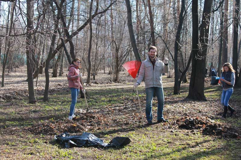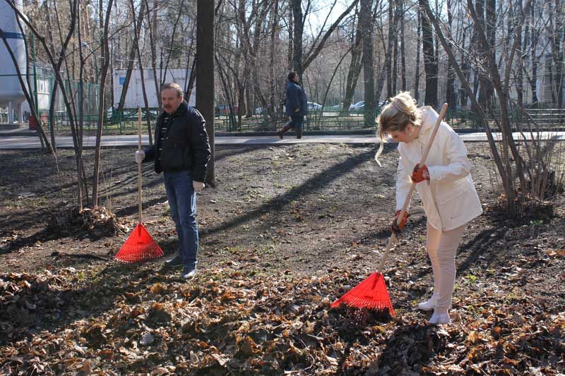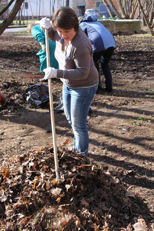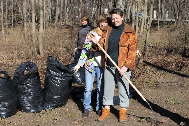 Погода благоприятствовала отличному настроению и работе на свежем воздухе — в считанные часы от прошлогодних листьев в нашем парке не осталось и следа.