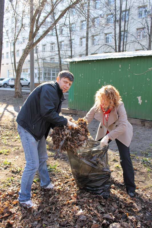 Каждое структурное подразделение больницы добросовестно привело в порядок территорию вокруг своих корпусов. Многие наши коллеги пришли с детьми, которые с удовольствием помогали.