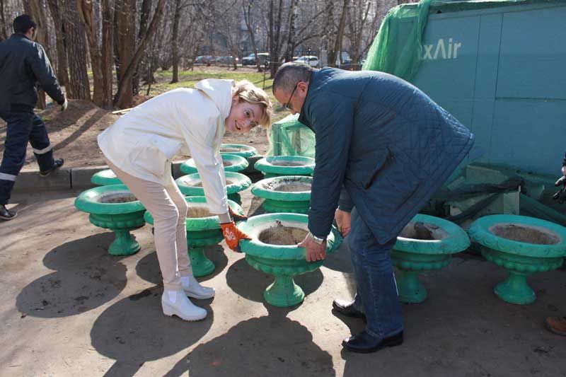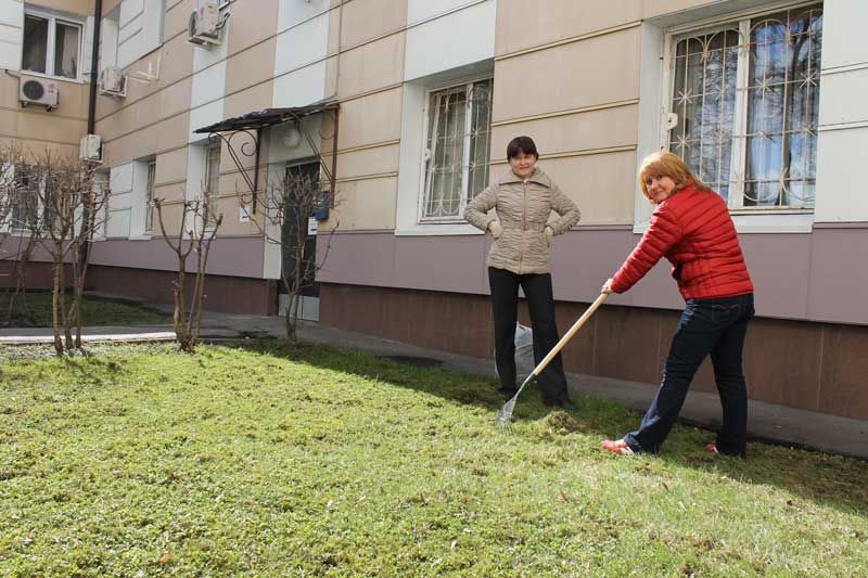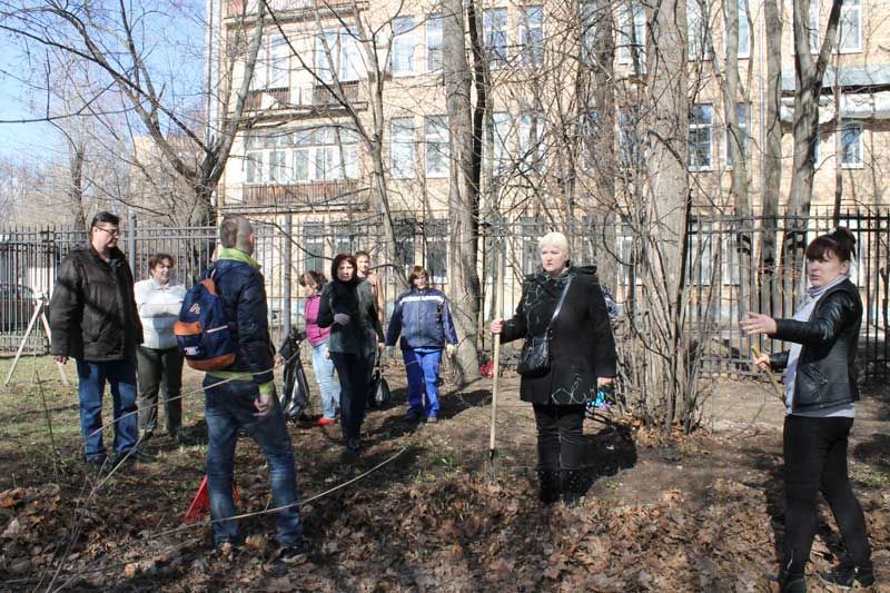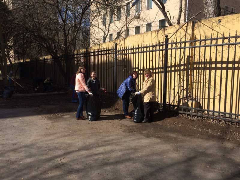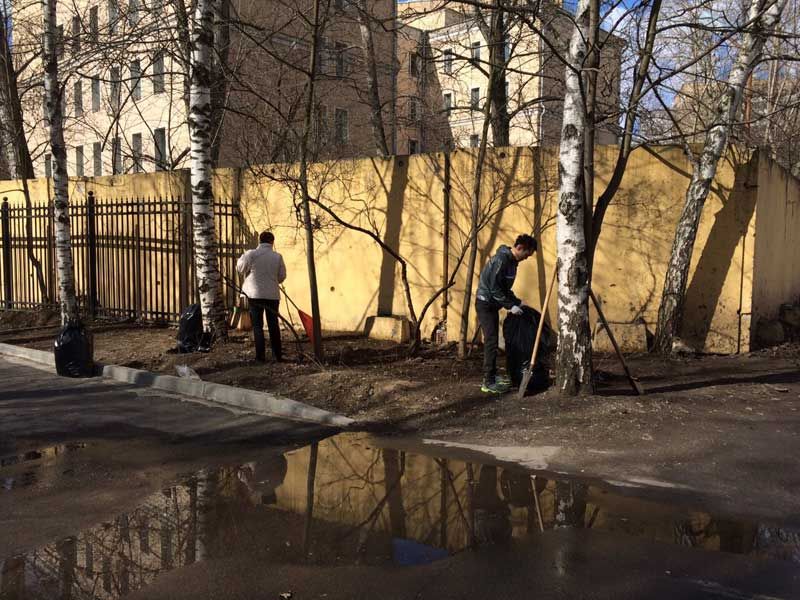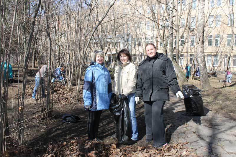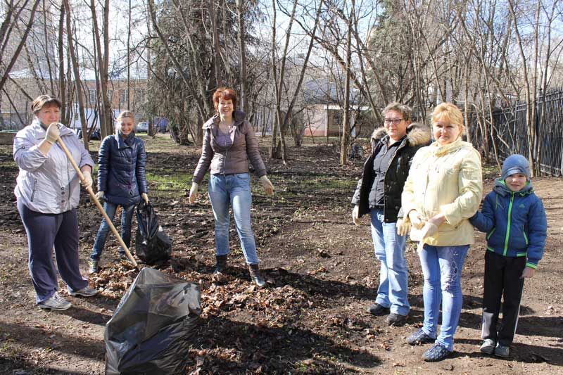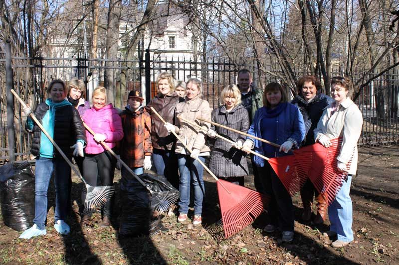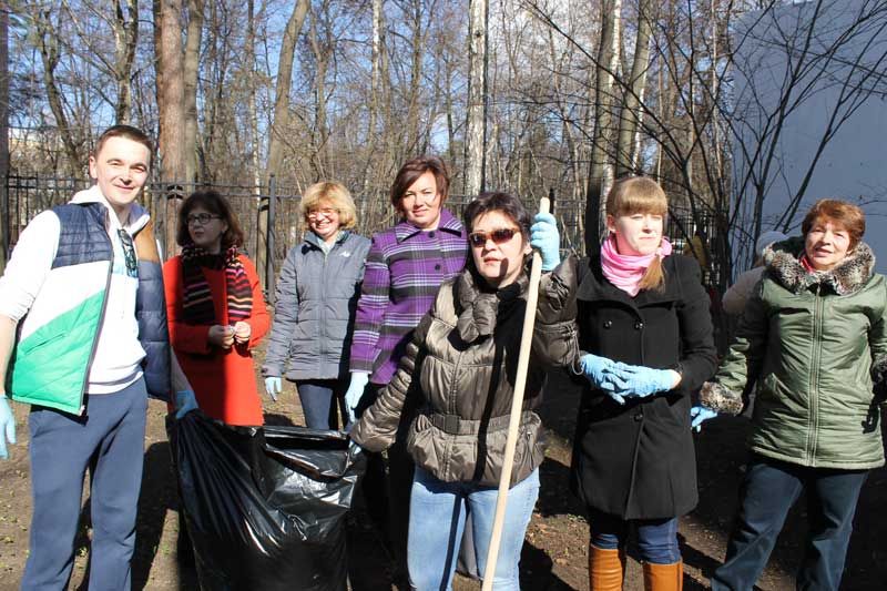 Итак, в нашем фотоотчете: чудесный весенний день, совместный труд и очевидный результат коллективной работы — чистая, ухоженная территория.