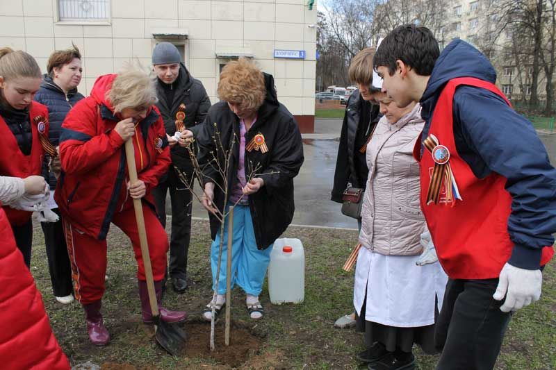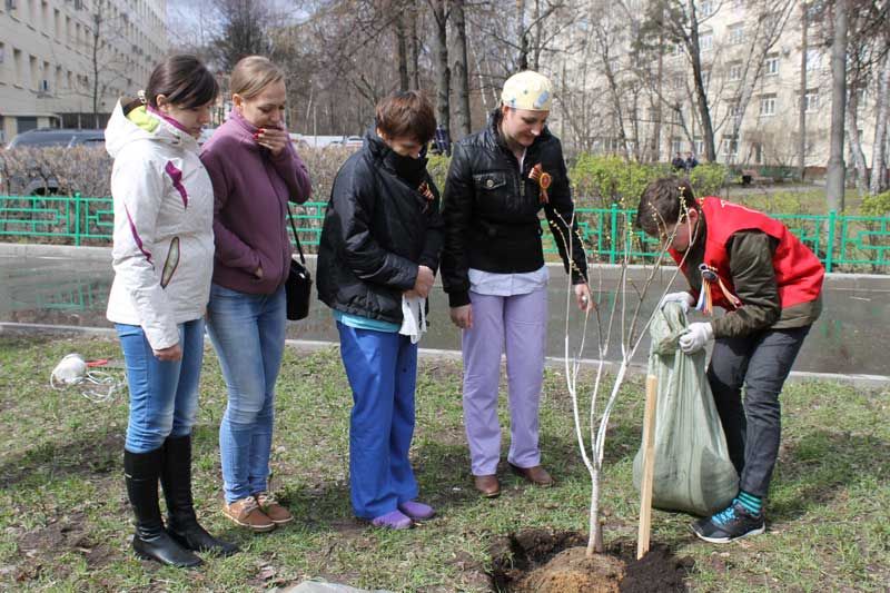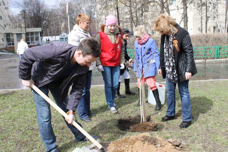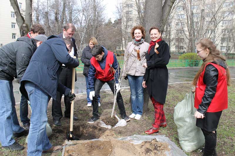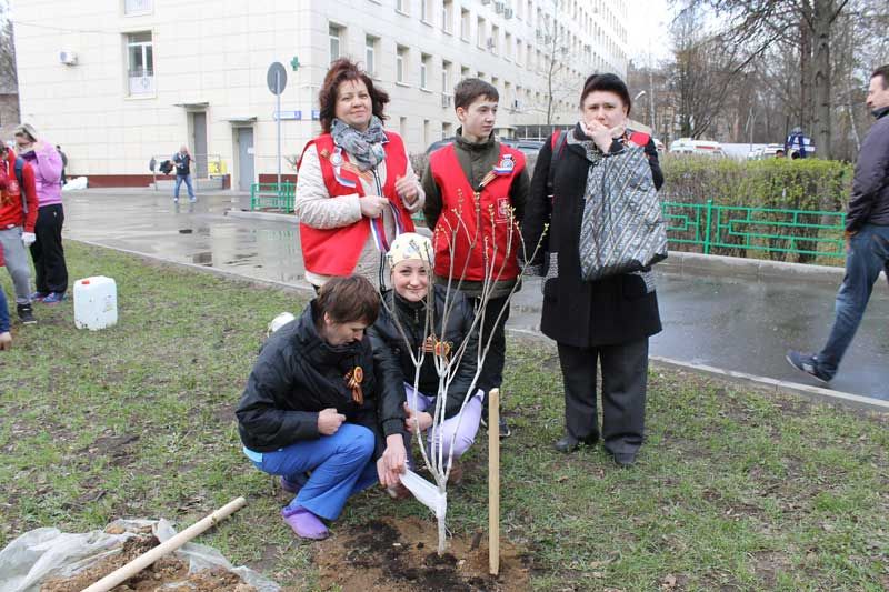 25 апреля на территории больницы прошел второй этап весеннего субботника, в ходе которого были посажены именные сорта сирени в честь полководцев и военачальников Великой Отечественной войны, именами которых названы улицы нашего района. Уникальные сорта специально выведены московскими селекционерами и подарены нашему округу к 70-летию Победы. Акция «Сирень Победы на улицах полководцев Победы» проводится уже не первый год при участии детской общественной организации «Цветочная дружина» и при поддержке муниципалитета и управы района Щукино.