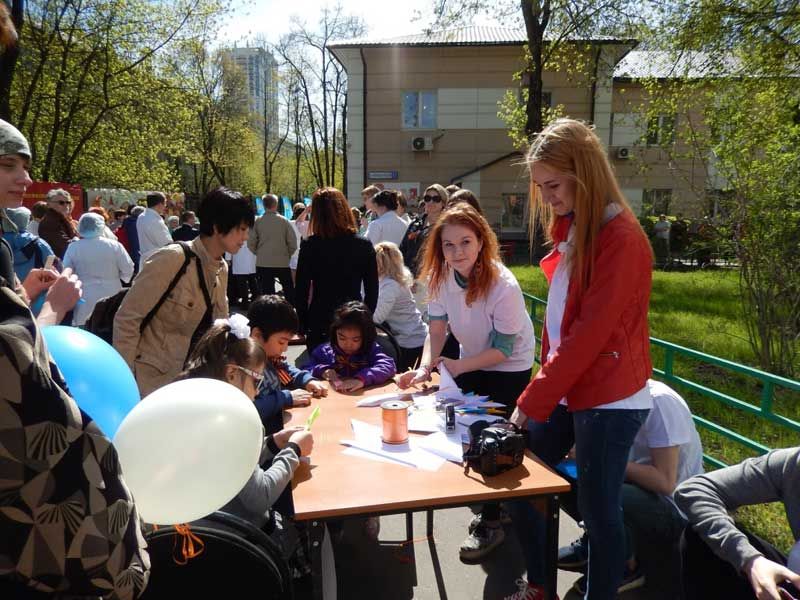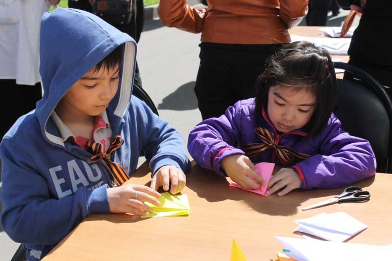 Прибывающим гостям, пациентам на прогулке и посетителям больницы было чем заняться до начала программы: изготовлению памятных монет обучали члены клуба исторической реконструкции МБУ «СДЦ «Щукинец»— «Черная Щука», каждый желающий мог, следуя советам инструктора, при помощи тяжеленного молота изготовить на память монетку «на удачу». Мастера оригами учили складывать журавликов, которых можно было запустить в небо вместе с воздушным шариком, и маленькие гости нашего праздника с удовольствием смастерили целую стаю. А в сквере пациенты, которые вышли на прогулку, пели песни военных лет под аккомпанемент баяна.