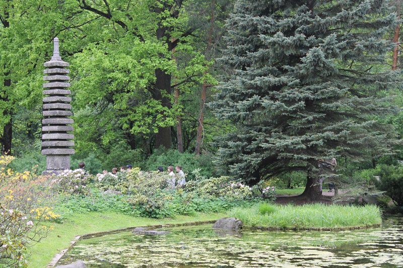 Главной целью нашего путешествия был Японский сад — небольшой уголок типичного для Страны Восходящего солнца ландшафта, устроенный с соблюдением всех особенностей японского национального садово-паркового искусства. На площади в 2,7 гектар собраны около 100 видов деревьев, кустарников и красиво цветущих травянистых растений, наиболее характерных для Японии, в том числе сакура с острова Хоккайдо.Также на территории расположены каменная пагода 18-го века, ручей с каскадом водопадов, два пруда с островами, деревянные мостики, садовые павильоны, построенные в традиционном стиле, и каменные фонари. Нам здорово повезло: дети в первый раз увидели цветущую сакуру, и это замечательно, ведь сакура цветет меньше недели, ее мимолетное цветение японцы сравнивают с быстротечностью и красотой жизни.