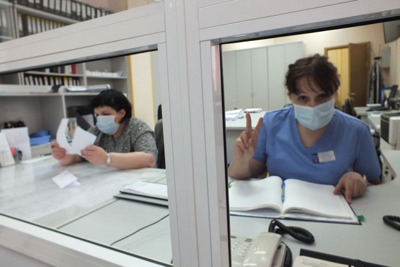 На своих рабочих местах сотрудники ГКБ №52 в обязательном порядке пользуются медицинской маской, защищая себя и своих пациентов.