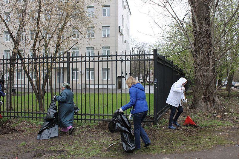 Сотрудники привели в порядок территорию вокруг своих корпусов: убирали остатки прошлогодних листьев, красили вазоны, сажали деревья. Кому не хватило работ на улице, трудились в отделениях на рабочих местах. А заряд бодрости и отличного настроения был получен ранним утром на коллективном чаепитии в шатре ГКБ в пункте раздачи инвентаря.