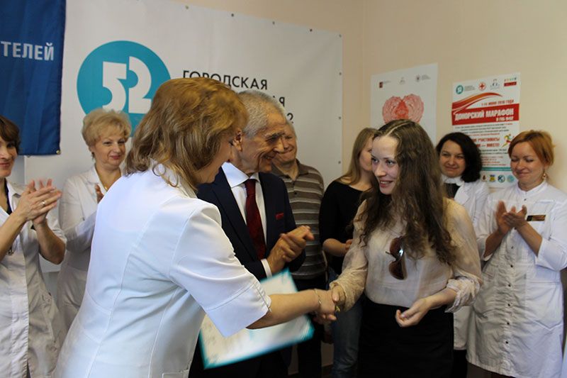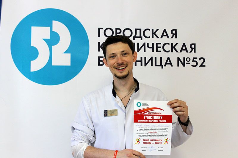 Благодарностью организаторов отмечен лидер Марафона – Союз Машиностроителей России, принявший участие в Донорском марафоне целыми трудовыми коллективами. За активное участие в организации и проведении Донорского марафона, за концентрацию доноров, за информационную поддержку — от лица пациентов и коллектива ГКБ №52 руководство больницы выражает искреннюю благодарность начальнику УВД по СЗАО ГУ МВД России по г. Москве Фещуку Анатолию Степановичу, заместителю руководителя аппарата Московского РО ООО «СоюзМаш России» Юрию Викторовичу Прямкову, Председателю Российского Красного Креста Раисе Тимофеевне Лукутцовой и советнику Председателя Сергею Викторовичу Бухарову, главному редактору газеты «Щукинец» Анне Владимировне Аникиной, компании «Подворье», Проректору ГОУ ВПО МГППУ Андрею Викторовичу Милехину, Фонду "Подари Жизнь", Национальному фонду развития здравоохранения. Только вместе мы могли организовать эту акцию, вместе нам предстоит совершить еще много полезных дел!