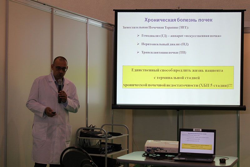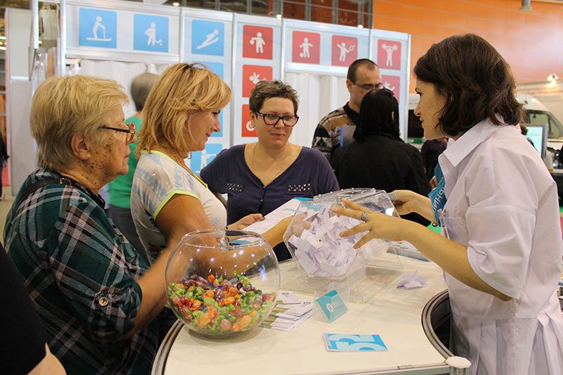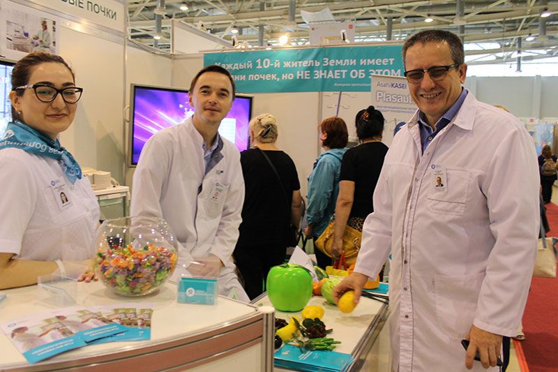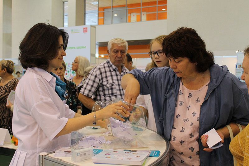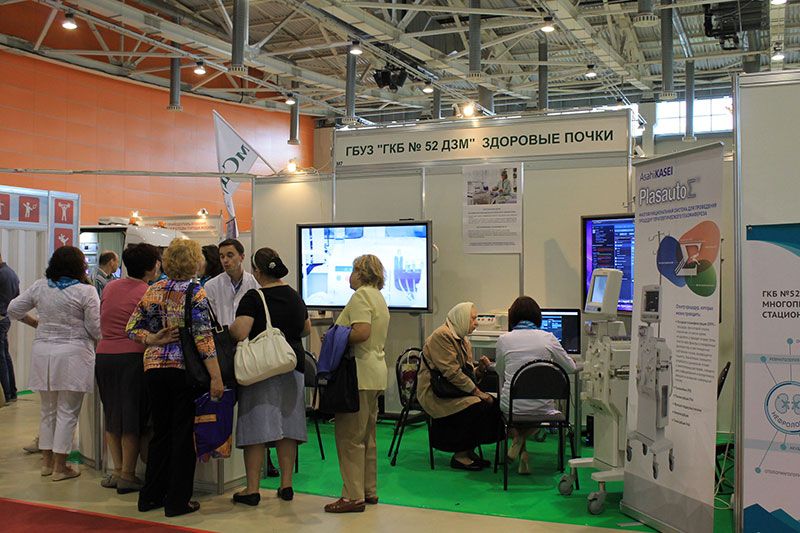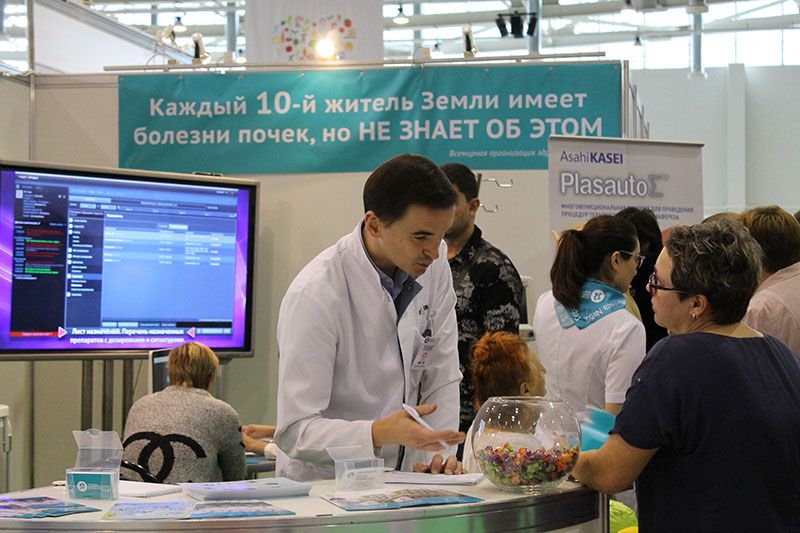 На тематической площадке «Здоровые почки» специалисты ГКБ №52 консультируют москвичей и гостей столицы по вопросам профилактики болезней почек и возможностей получения медицинской помощи нефрологическими пациентами. За два дня работы выставки около 400 человек получили консультацию нефролога, сделали анализ крови на креатинин, поговорили с врачом-диетологом о здоровом питании и приняли участие в беспроигрышной лотерее.