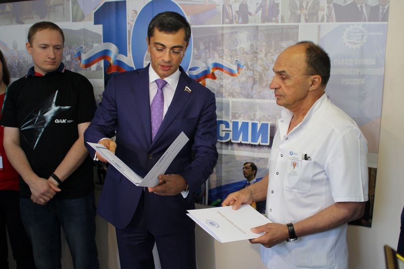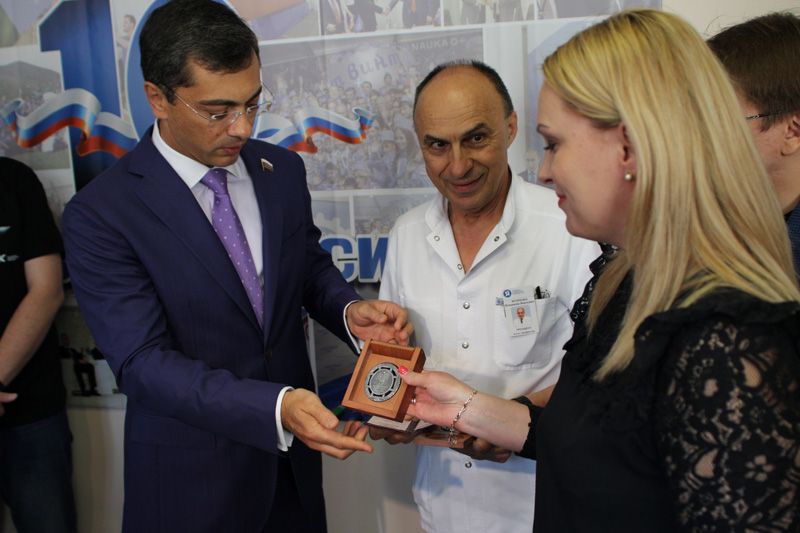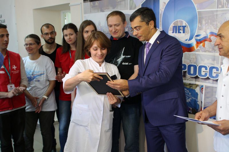 Поблагодарить доноров и сотрудников ОПК приехал первый вице-президент Союза Машиностроителей России Владимир Гутенев. Он вручил главному врачу ГКБ №52 Марьяне Лысенко и президенту Владимиру Вторенко благодарственные письма за большой личный вклад в развитие программы безвозмездного донорства крови, а заведующей отделением переливания крови Оксане Карповой — грамоту Союза Машиностроителей России. Также были отмечены наградами почетные доноры города Москвы, которые «выросли» в стенах нашего отделения переливания крови.