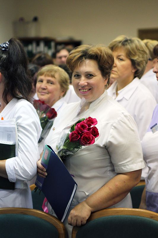 Сегодня традиционная еженедельная конференция была праздничной и потому полна аплодисментов и цветов. Ровно 100 грамот и благодарностей от Министерства здравоохранения РФ, Департамента здравоохранения города Москвы, Управы района Щукино и руководства ГКБ № 52 были вручены достойнейшим сотрудникам больницы.