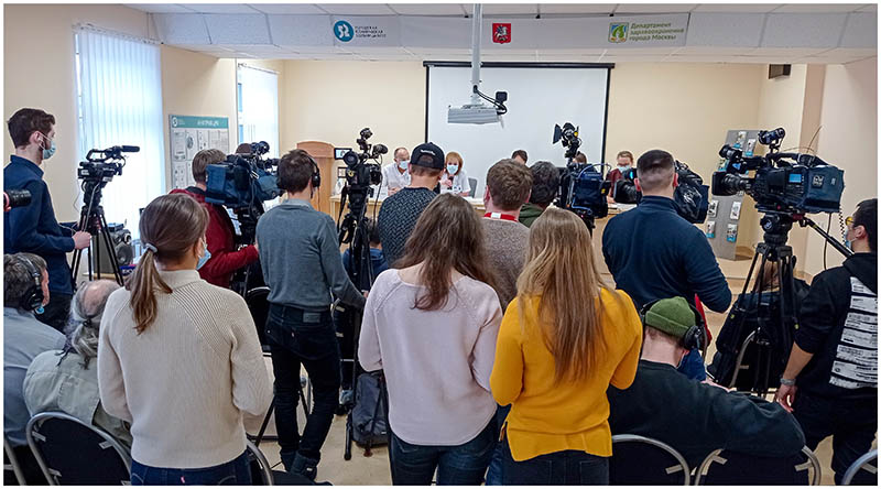 Итоги года работы с ковидными пациентами подвели в ГКБ №52. 1 марта 2021 г., спустя год с начала поступления в приемное отделение пациентов с подозрением на коронавирусную инфекцию, в больнице прошла пресс-конференция с широким присутствием СМИ.