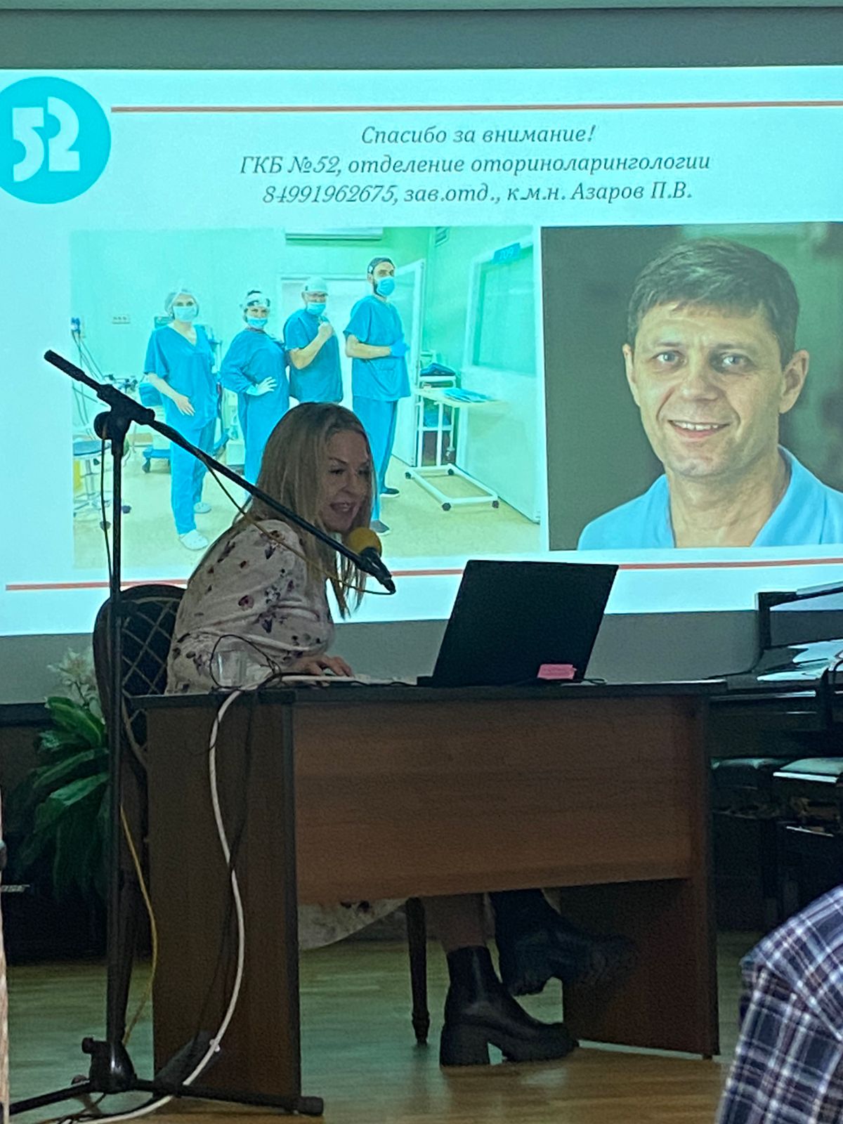 Среди докладов педагогов-вокалистов с интересом был воспринят наш опыт работы с пациентами с заболеваниями гортани: "Голос вокалиста. Что мы должны о нем знать? Советы фониатра". Докладчик, врач-оториноларинголог Лилия Сергеевна Будейкина имеет практику врача-фониатра и много лет работает с пациентами с проблемами с голосом, в том числе с певцами.
