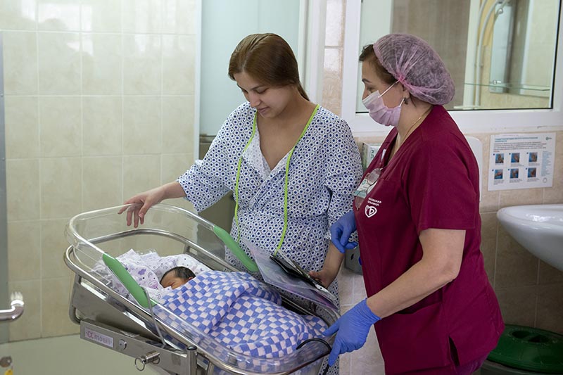 После стабилизации состояния малыш находится с мамой в одной палате. Ежедневные обходы врач-неонатолог осуществляет в присутствии мамы, что позволяет получить полную информацию о состоянии здоровья малыша и индивидуальные рекомендации по уходу и вскармливанию. Основное направление работы коллектива отделения - пропаганда и поддержка исключительно грудного вскармливания с первых минут жизни. Мы помогаем освоить основные правила ухода за малышом, наладить грудное вскармливание.