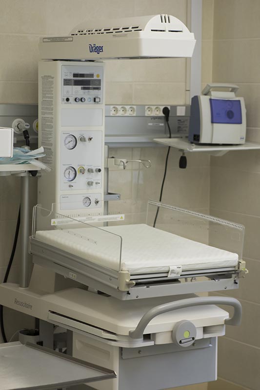 Родовое отделение включает в себя 8 индивидуальных родильных залов, оснащённых современным оборудованием для будущих мам и малышей (многофункциональные кровати, фетальные мониторы для наблюдения за сердцебиением плода, детские термотерапевтические кровати, позволяющие произвести первый осмотр новорожденного и оказать, в случае необходимости, первую реанимационную помощь).