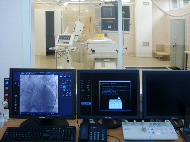 Отделение оснащено современной ангиографической системой Toshiba Infinix VF-I, современными системами гемодинамического мониторинга, вспомогательного кровообращения и реолитической тромбэкстракции.