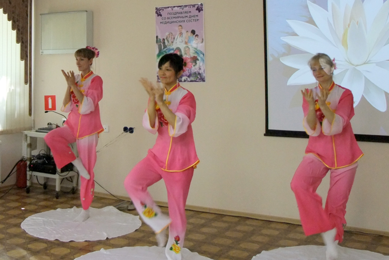 Праздничный концерт открыли коллектив Фалунь Дафа (Фалуньгун) исполнив танец лотоса и танец с веерами.