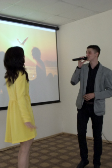 Пришли поздравить медсестер и студенты ММК №4 Кристина Секера и Александр Марчук, ребята с августа 2014 года пополнят ряды молодых специалистов ГКБ № 52. Они выступили с песней "Одноклассники".