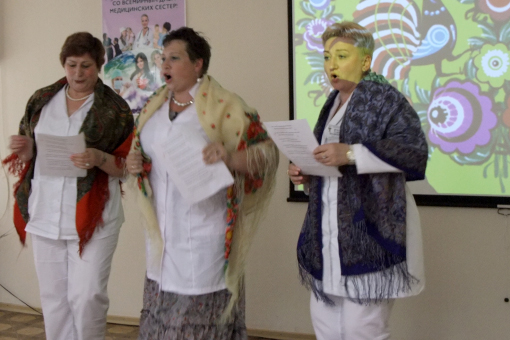 Старшая медсестра приемного отделения Наталья Михайловна Черемушкина прочла стихи "Варенье из одуванчиков" и "Голубые глазки", написанные врачом-хирургом, ранее работавшим в больнице. А коллектив медсестер ОРИТ №2, сурдологического и 5 нефрологического отделений исполнили частушки.