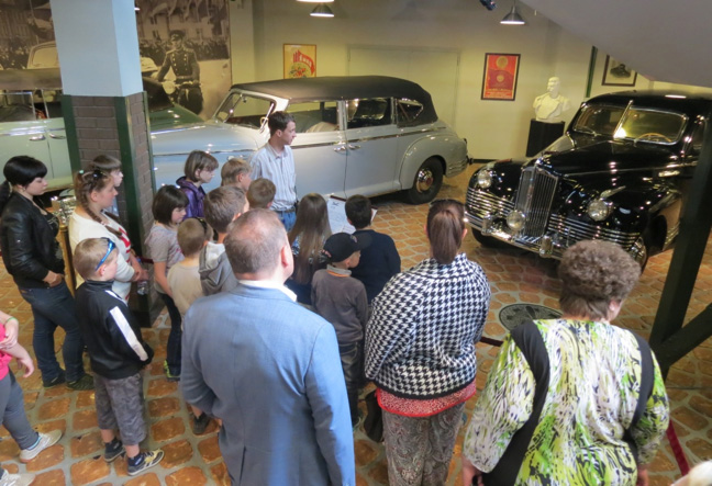 На цокольном этаже находится экспозиция «Гараж Страны Советов». Здесь экскурсовод рассказал ребятам о самых ярких экземплярах советского автопрома – от народного до номенклатурного. Например, уникальный автомобиль ЗИС-115, на котором передвигался И.В. Сталин.