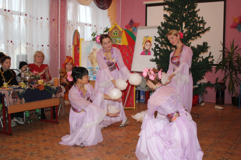 Исполнились самые заветные мечты ребятишек, ведь каждый из них заранее написал Деду Морозу письмо с пожеланиями. Танцевальный коллектив «Волшебных фей» порадовал детишек своим выступлением, подарив каждому цветок лотоса на счастье.