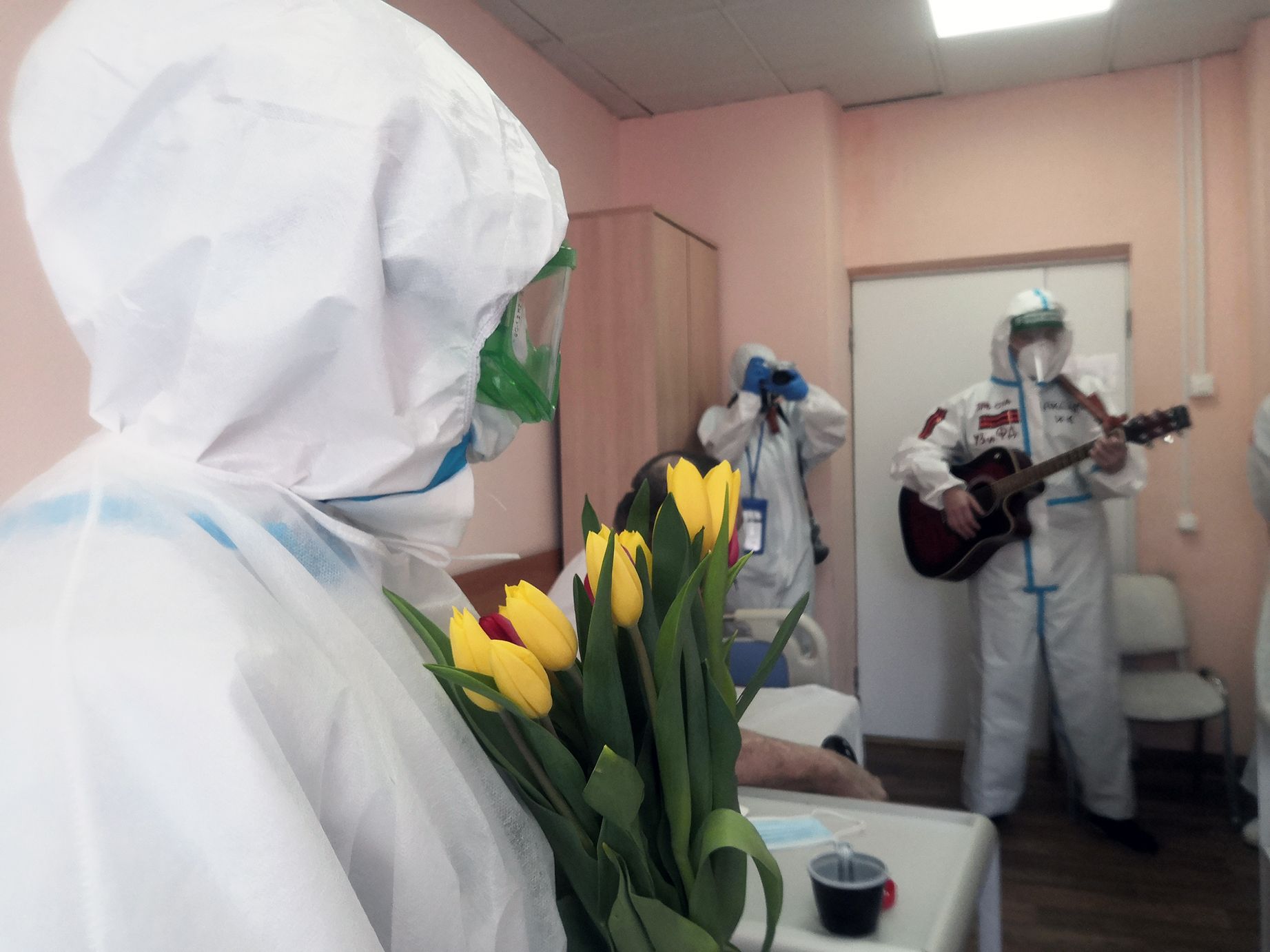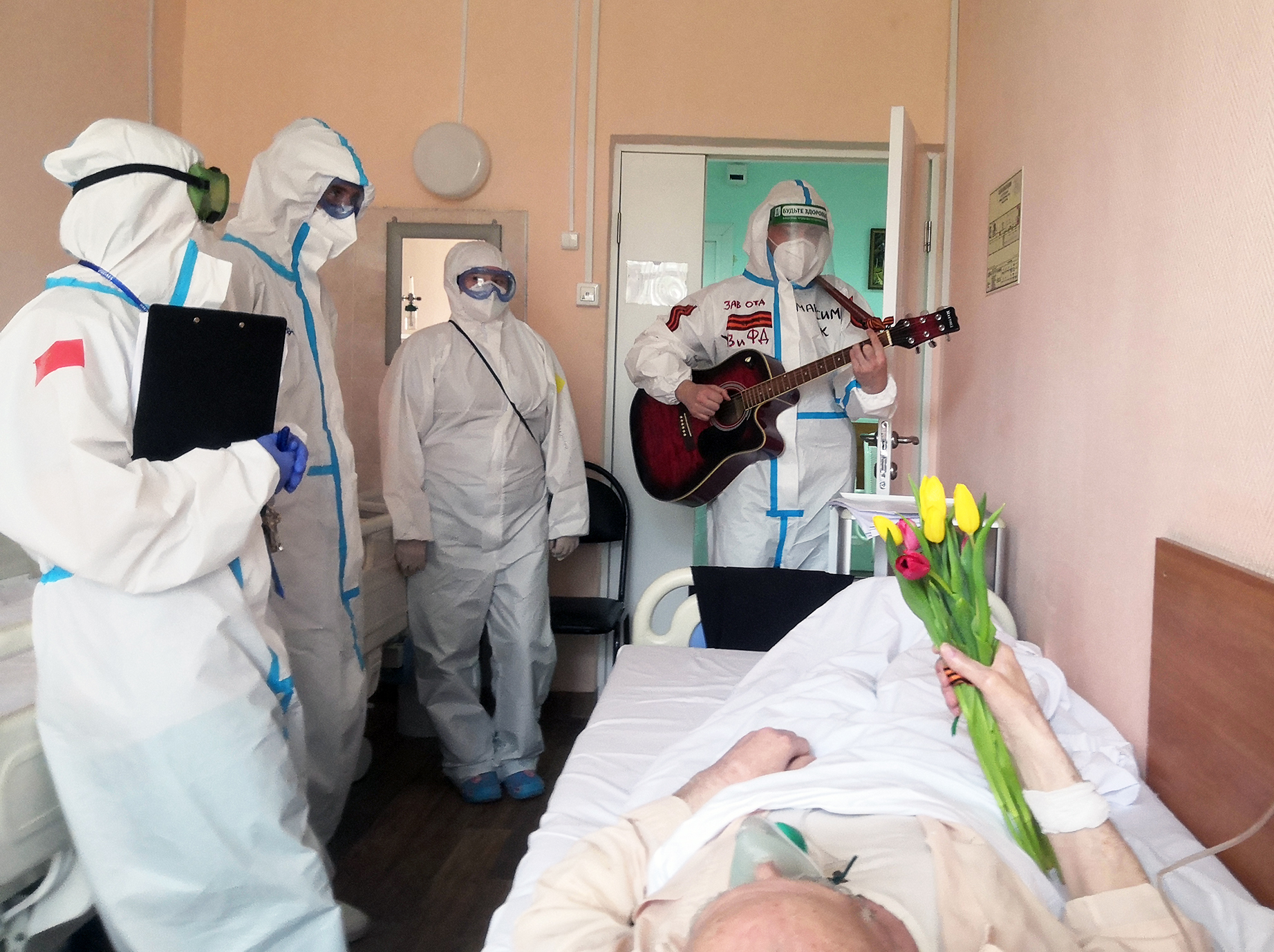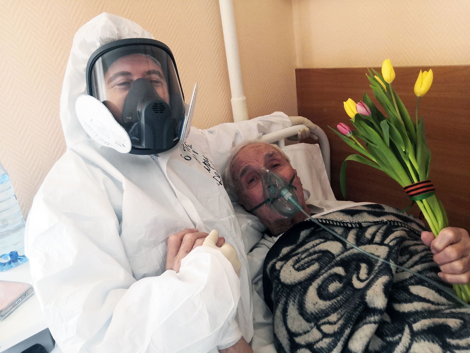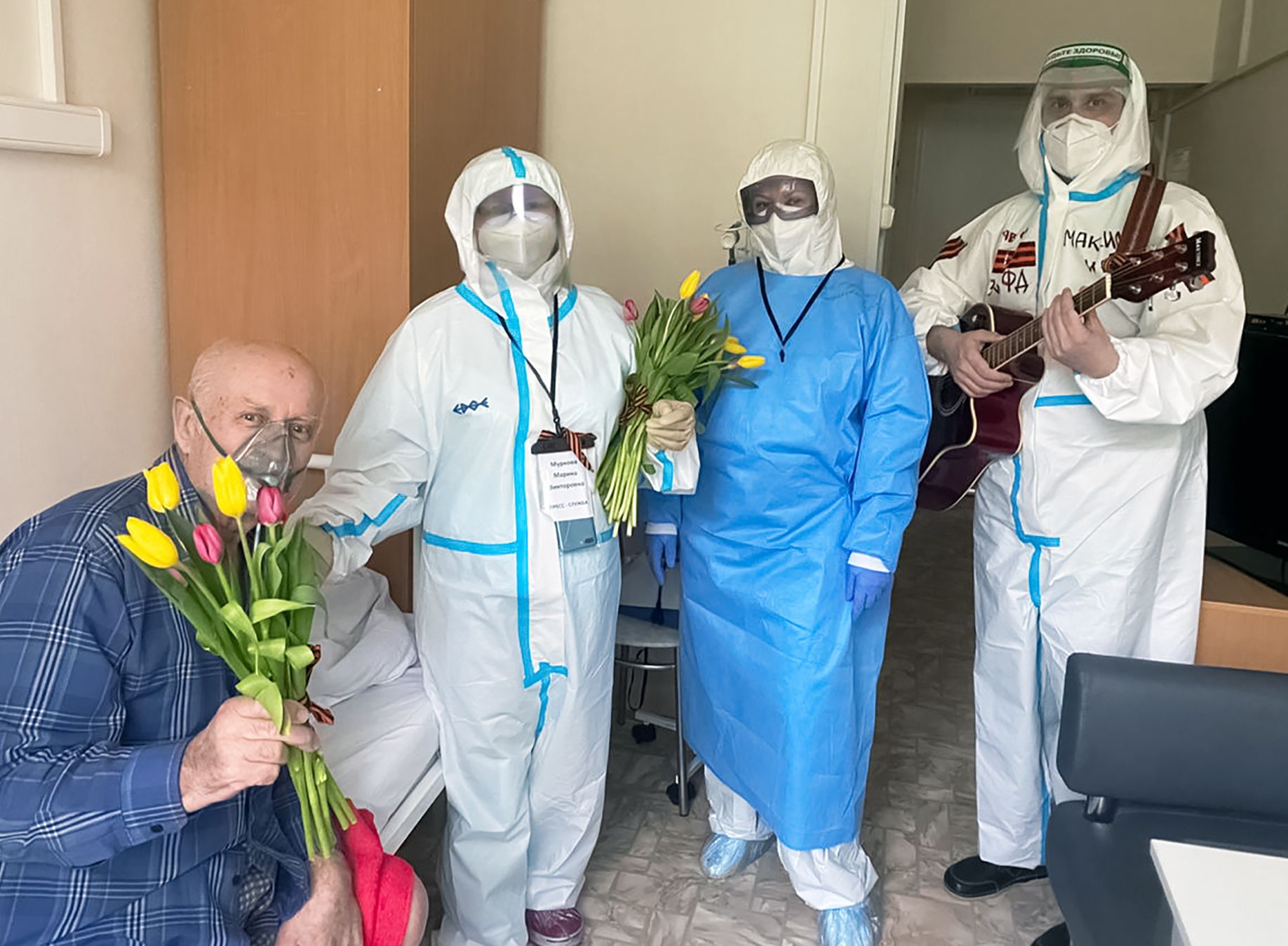Мы сегодня поздравляли в отделениях пациентов, которые хорошо помнят, что такое война. Дарили цветы, пели песни военных лет. Солдаты и дети той страшной войны, дожив до преклонных лет в здравии, они сегодня воюют с другим противником - с коронавирусом.
