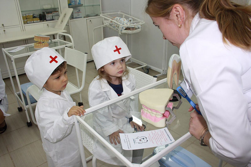 Детишки - воспитанники детского сада - приходили на занятия, на которых их в игровой форме знакомили с самыми разными профессиями, в том числе с медицинскими специальностями. Ребята сами могли почистить зубы на муляже, запеленать куклу, наклеить пластырь и забинтовать руку. Теперь Маша и Семен отлично знают, как ухаживать за молочными зубами, чтобы постоянные выросли крепкими и здоровыми, и надеемся, не боятся докторов. А Юлию мы поздравляем с призовым II местом и желаем вдохновения и новых творческих идей!