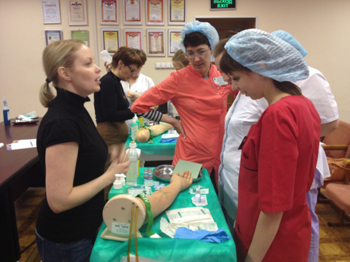 Обсуждались современные методики проведения безопасной инфузионной терапии, профилактические мероприятия, осложнения и риски пациента и медицинского персонала. Также было проведено практическое занятие по отработке алгоритма безопасности инфузионной терапии. Медицинские сестры, принявшие участие в образовательном курсе, закрепили практические навыки на муляжах и приняли активное участие в дискуссии с лекторами. Каждый участник цикла получил сертификат Международной школы постдипломного образования «Эскулап Академия».