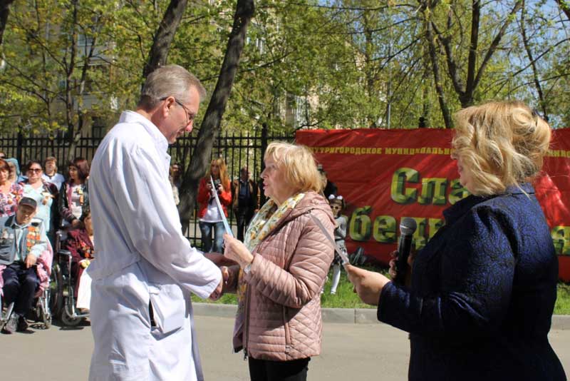 Замечательно, что на празднике нашли возможность присутствовать наши самые почетные гости — ветераны Великой Отечественной войны, которые находятся на лечении в отделениях больницы. Множество добрых слов в этот день звучало в их адрес: с теплыми словами выступили депутат Московской городской думы Олег Иосифович Сорока, руководитель ВМО Шукино в городе Москве Татьяна Александровна Князева, президент ГКБ №52 Владимир Иванович Вторенко. Приятно было слышать слова благодарности в адрес наших коллег, сотрудников ГКБ №52 — за вклад в сохранение и укрепление здоровья жителей округа.