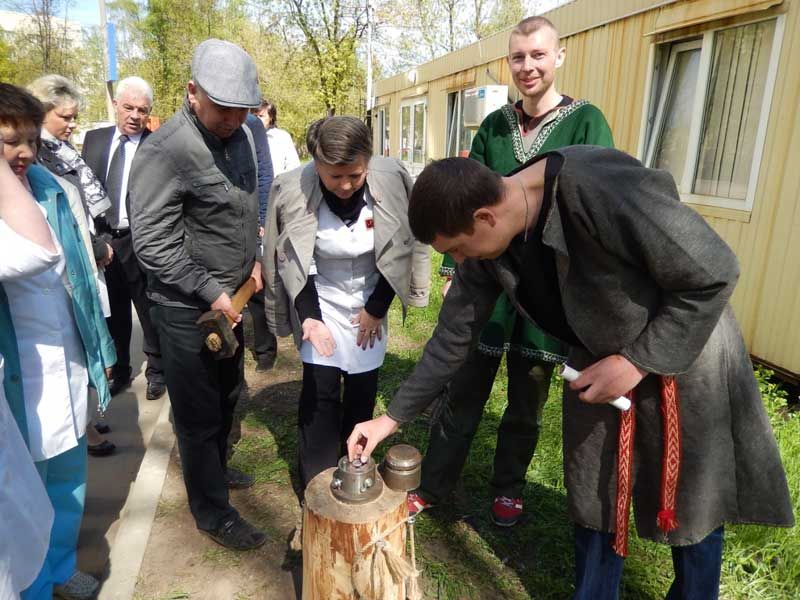 Прибывающим гостям, пациентам на прогулке и посетителям больницы было чем заняться до начала программы: изготовлению памятных монет обучали члены клуба исторической реконструкции МБУ «СДЦ «Щукинец»— «Черная Щука», каждый желающий мог, следуя советам инструктора, при помощи тяжеленного молота изготовить на память монетку «на удачу». Мастера оригами учили складывать журавликов, которых можно было запустить в небо вместе с воздушным шариком, и маленькие гости нашего праздника с удовольствием смастерили целую стаю. А в сквере пациенты, которые вышли на прогулку, пели песни военных лет под аккомпанемент баяна.