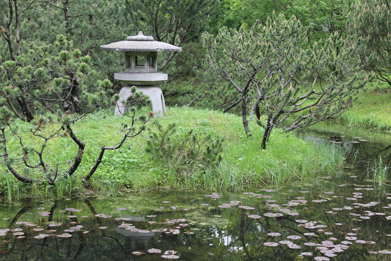 Главной целью нашего путешествия был Японский сад — небольшой уголок типичного для Страны Восходящего солнца ландшафта, устроенный с соблюдением всех особенностей японского национального садово-паркового искусства. На площади в 2,7 гектар собраны около 100 видов деревьев, кустарников и красиво цветущих травянистых растений, наиболее характерных для Японии, в том числе сакура с острова Хоккайдо.Также на территории расположены каменная пагода 18-го века, ручей с каскадом водопадов, два пруда с островами, деревянные мостики, садовые павильоны, построенные в традиционном стиле, и каменные фонари. Нам здорово повезло: дети в первый раз увидели цветущую сакуру, и это замечательно, ведь сакура цветет меньше недели, ее мимолетное цветение японцы сравнивают с быстротечностью и красотой жизни.