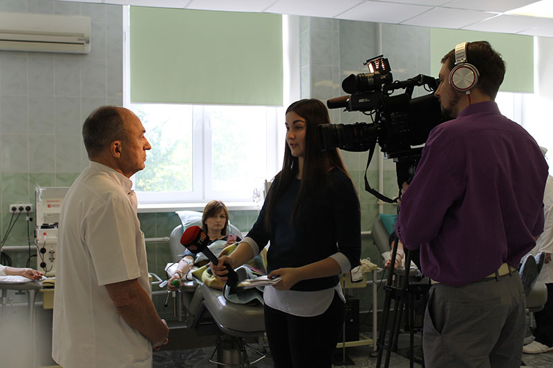 с донорами, которые пришли 2 июня в ОПК поддержать Донорский марафон. Это сотрудники полиции УВД по СЗАО ГУ МВД России по г. Москве, представители Общественного Совета при УВД и Женского Совета, всего более 50 человек. А вместе с ними прибыла съемочная группа программы ТВЦ "Петровка, 38", так что смотрите репортаж о нас плюс интервью с президентом больницы В.И.Вторенко в хронике самых радостных происшествий!