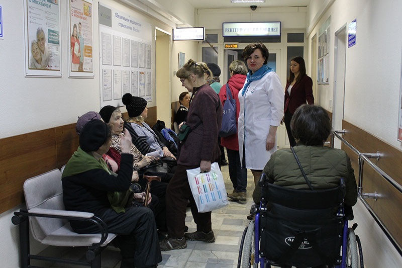 В этот день мы также помогли коллегам из амбулаторных учреждений округа в организации углубленного медицинского обследования маломобильных жителей СЗАО. ГКБ №52 оборудована всем необходимым для передвижения пациентов на колясках, кроме того, в помощь социальным работникам мобильность пациентов обеспечивали сотрудники транспортной бригады больницы.