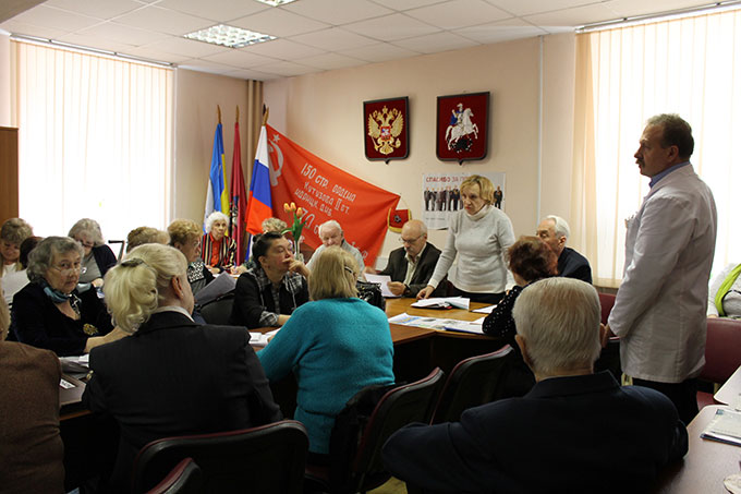 На встрече присутствовали представители актива Московской городской организации Ветеранов, председатели комиссий по медицинскому обслуживанию ряда московских окружных Советов ветеранов. Обсуждали вопросы подготовки к праздничным мероприятиям, социального и медицинского обеспечения ветеранов и инвалидов.