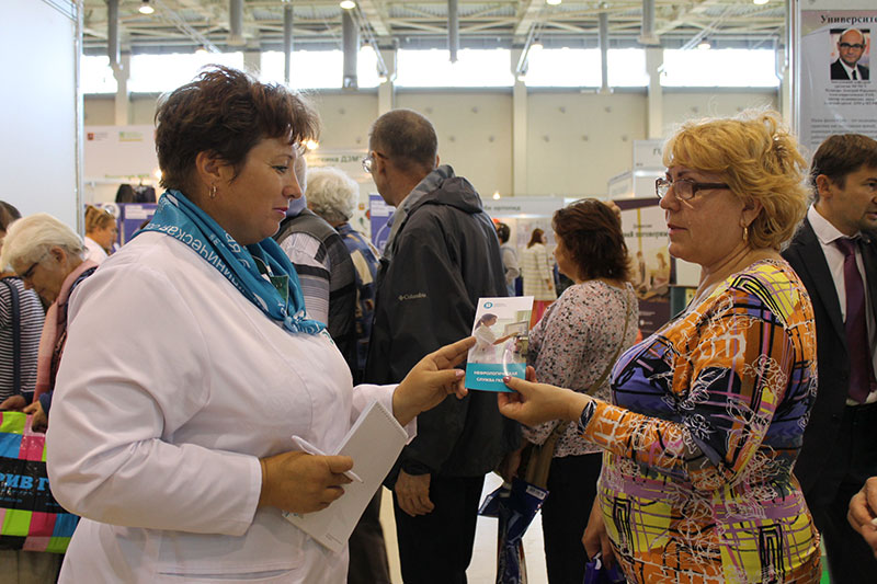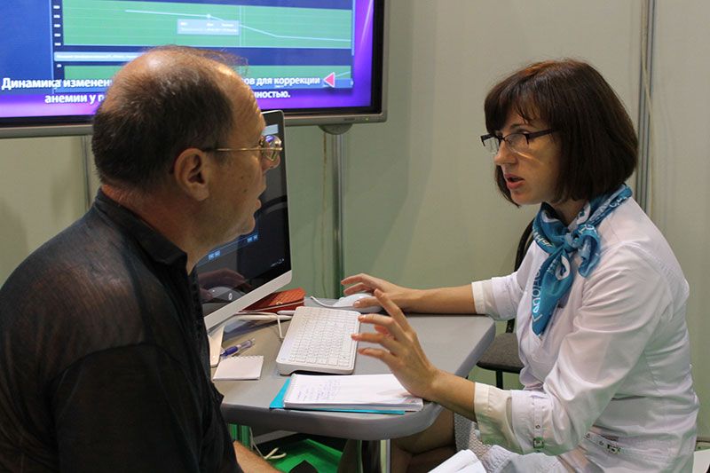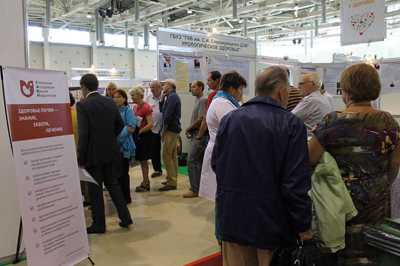 На тематической площадке «Здоровые почки» специалисты ГКБ №52 консультируют москвичей и гостей столицы по вопросам профилактики болезней почек и возможностей получения медицинской помощи нефрологическими пациентами. За два дня работы выставки около 400 человек получили консультацию нефролога, сделали анализ крови на креатинин, поговорили с врачом-диетологом о здоровом питании и приняли участие в беспроигрышной лотерее.
