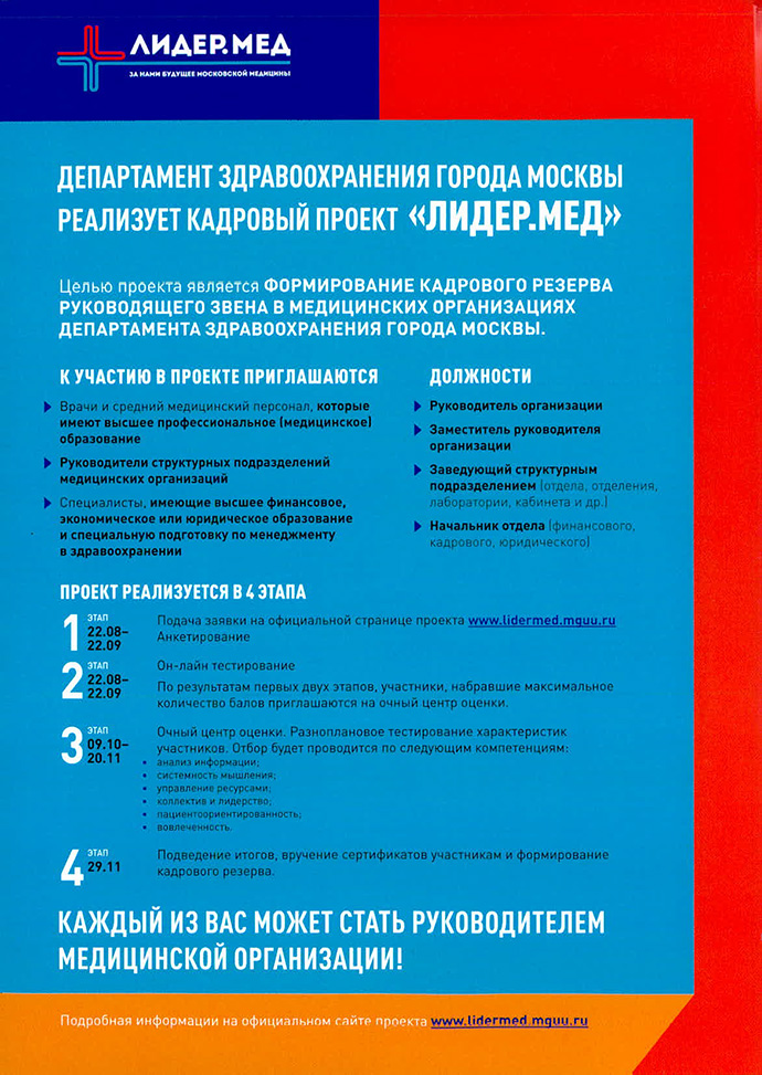 Департамент здравоохранения города Москвы реализует кадровый проект «ЛИДЕР.МЕД»