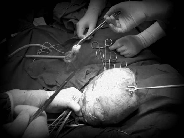 Планировалось выполнить лапароскопическую миомэктомию. Но интраоперационно, принимая во внимание огромный размеры миомы и ее расположение, врачи решили продолжить операцию открытым способом. Учитывая возраст женщины и желание иметь детей, заведующий отделением гинекологии Шевченко Николай Алексеевич, врачи-гинекологи Давыденко Наталья Леонидовна и Запольская Надежда Петровна выполнили органосохраняющую операцию: удалили миому, сохранив матку.