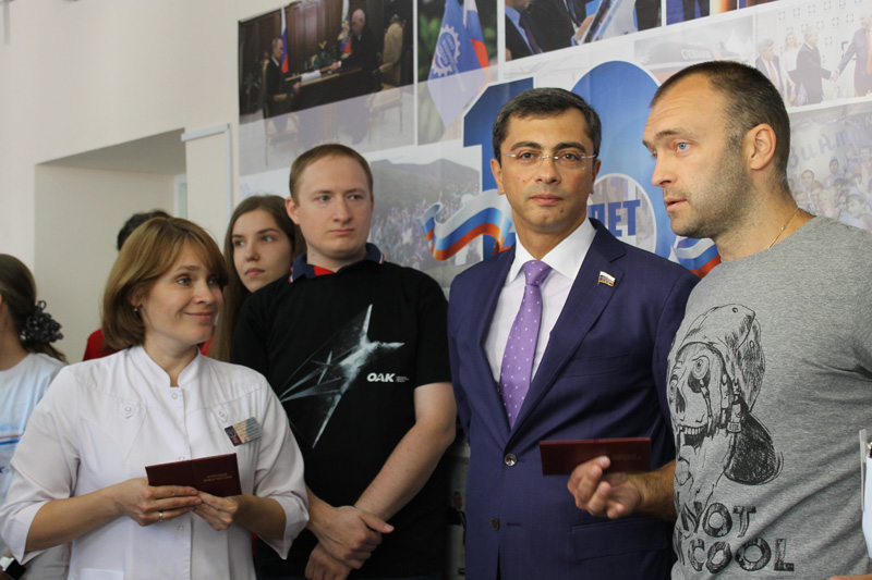 Поблагодарить доноров и сотрудников ОПК приехал первый вице-президент Союза Машиностроителей России Владимир Гутенев. Он вручил главному врачу ГКБ №52 Марьяне Лысенко и президенту Владимиру Вторенко благодарственные письма за большой личный вклад в развитие программы безвозмездного донорства крови, а заведующей отделением переливания крови Оксане Карповой — грамоту Союза Машиностроителей России. Также были отмечены наградами почетные доноры города Москвы, которые «выросли» в стенах нашего отделения переливания крови.