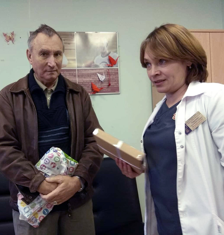 Наверное, нет ничего лучше для донора, чем лично убедиться, что его кровь работает: помогает выздороветь, продлить жизнь. Сегодня у наших гостей была такая возможность — в отделение заглянул пациент, о котором мы уже писали здесь, и мы были очень рады узнать, что у него все хорошо. И в этом заслуга наших доноров, ведь основное лечение у Валерия Васильевича — переливания эритроцитсодержащих компонентов крови. А еще мы поздравили одну из наших постоянных помощниц отделения, Елену Анатольевну Савенкову с присвоением звания Почётного донора города Москвы (это уже 39-й в 2018 году в нашем ОПК!). И все это на глазах доноров начинающих, доноров " со стажем", журналистов и сотрудников других отделений больницы — надеемся, об этом узнают и другие люди, а значит, мы встречались сегодня не зря.