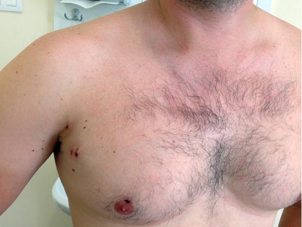 Однако малый размер кожного разреза накладывает ряд ограничений на показания к такой операции. Применяемые нами эндовидеохирургические технологии позволяют вообще избежать разреза на шее. Если клиническая ситуация допускает, мы предложим пациенту выполнить наименее травмирующую, с отсутствием косметических дефектов операцию эндоскопическим доступом из подмышечной области или области груди.