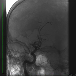 ![]() рис 3. Кровоток в бассейне правой внутренней сонной, передней и средней мозговых артерий восстановлен |