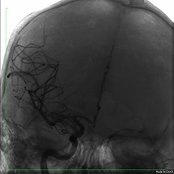 — Пациентка поступила через 1,5 часа от начала клинических проявлений. При осмотре лицо ассиметрично за счет грубого пареза мимических мышц слева, полностью отсутствуют движения в левых конечностях, мышечный тонус в левых конечностях снижен. Выполнена КТ головного мозга, на которой выявлен тромбоз средней мозговой артерии справа. Учитывая малый срок от начала заболевания, клинические данные и отсутствие противопоказаний, мы приняли решение о проведении тромболитической терапии (восстановление кровотока в сосуде за счёт растворения тромба внутри сосудистого русла) с последующим выполнением тромбоэкстракции (удаления остатков тромба).