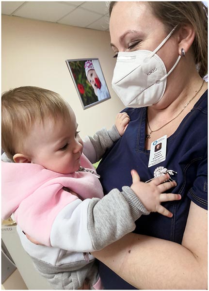 Маша родилась с оценкой 3 балла по шкале Апгар. Стандартные действия: редкое сердцебиение — интубация — ИВЛ, на фоне которой сохранялась брадикардия до 70 уд/мин. — непрямой массаж сердца — восстановление ЧСС 120 уд/мин. — по стабилизации состояния в возрасте 15 мин.жизни в транспортном реанимационном инкубаторе на ИВЛ переведена в ОРИТ №6. В отделении введен Куросурф, продолжена ИВЛ. Три дня она провела у нас, а когда состояние стабилизировалось, мы перевели девочку в Филатовскую больницу.