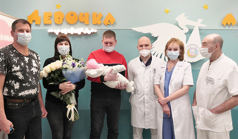 — В состав операционной бригады вошли врачи акушеры-гинекологи, неонатологи, кардиологи, анестезиологи родильного дома, 52-й больницы и коллеги–трансплантологи. неонатологи. 26 января в 10:07 родилась доношенная девочка с массой тела 3450 гр. и ростом 52 см. В дальнейшем самочувствие мамы и ребенка хорошее, послеродовый период прошел в палате совместного пребывания. Мы немного дольше обычного наблюдали нашу пациентку в послеродовом отделении ввиду ее особого состояния. Но ни одна из девушек «не подвела», и мы благополучно выписываем их вместе.