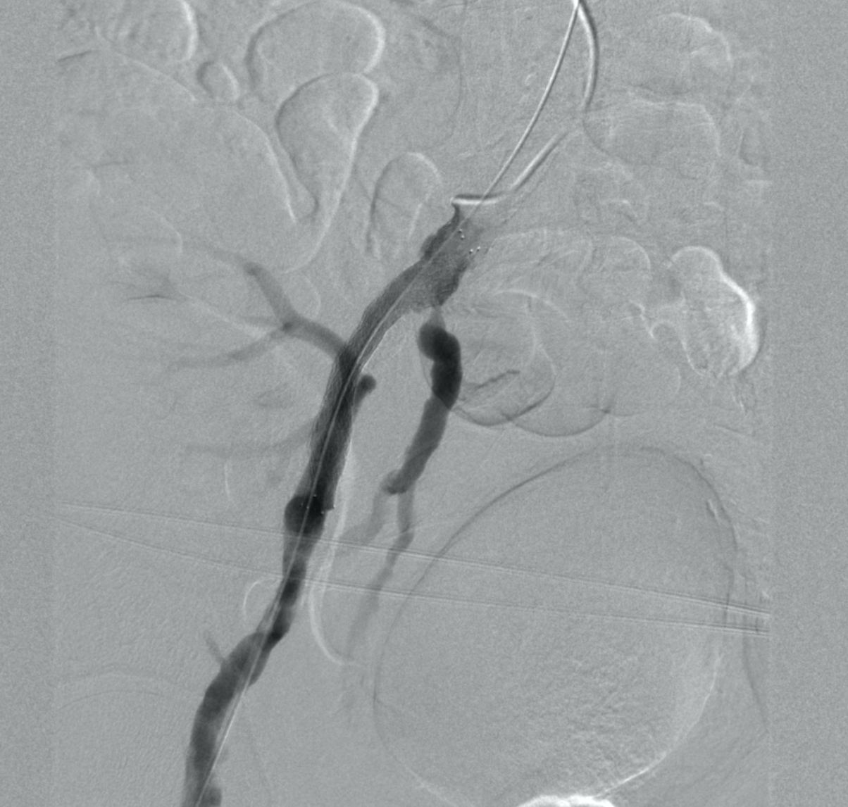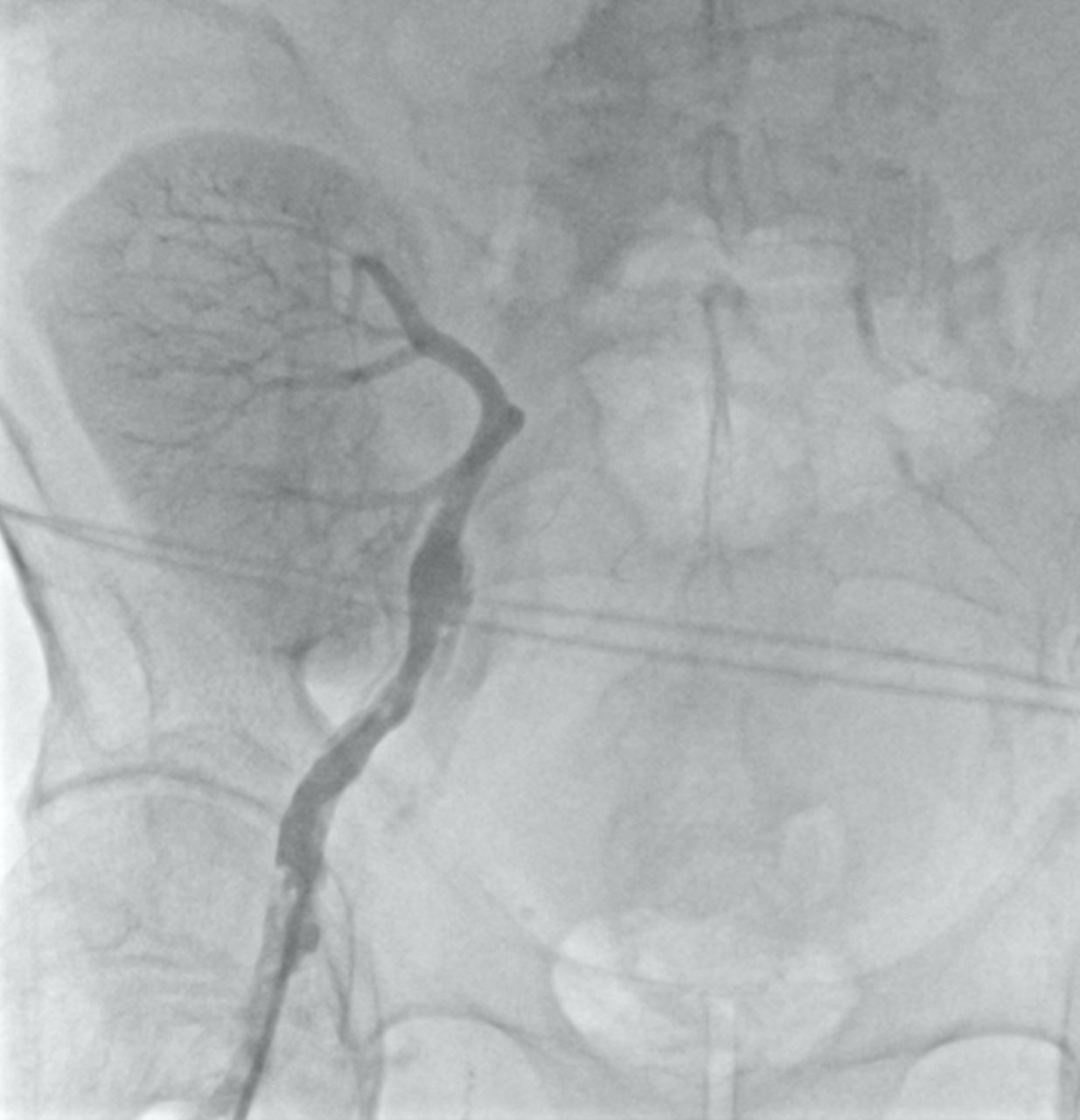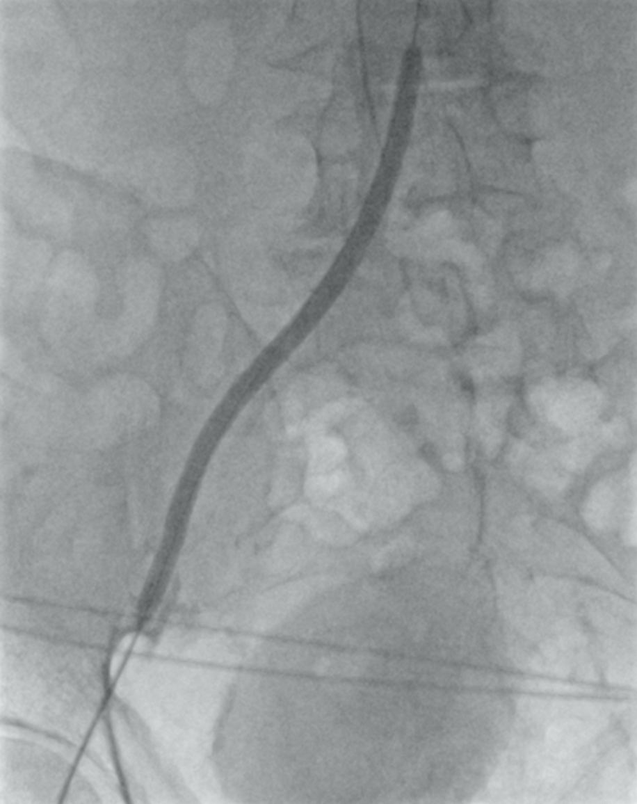 С учетом критического стеноза наружной подвздошной артерии с развитием дисфункции трансплантата, консилиум врачей принял решение о выполнении ангиографии данного сегмента и восстановления кровотока в условиях рентгеноперационной.