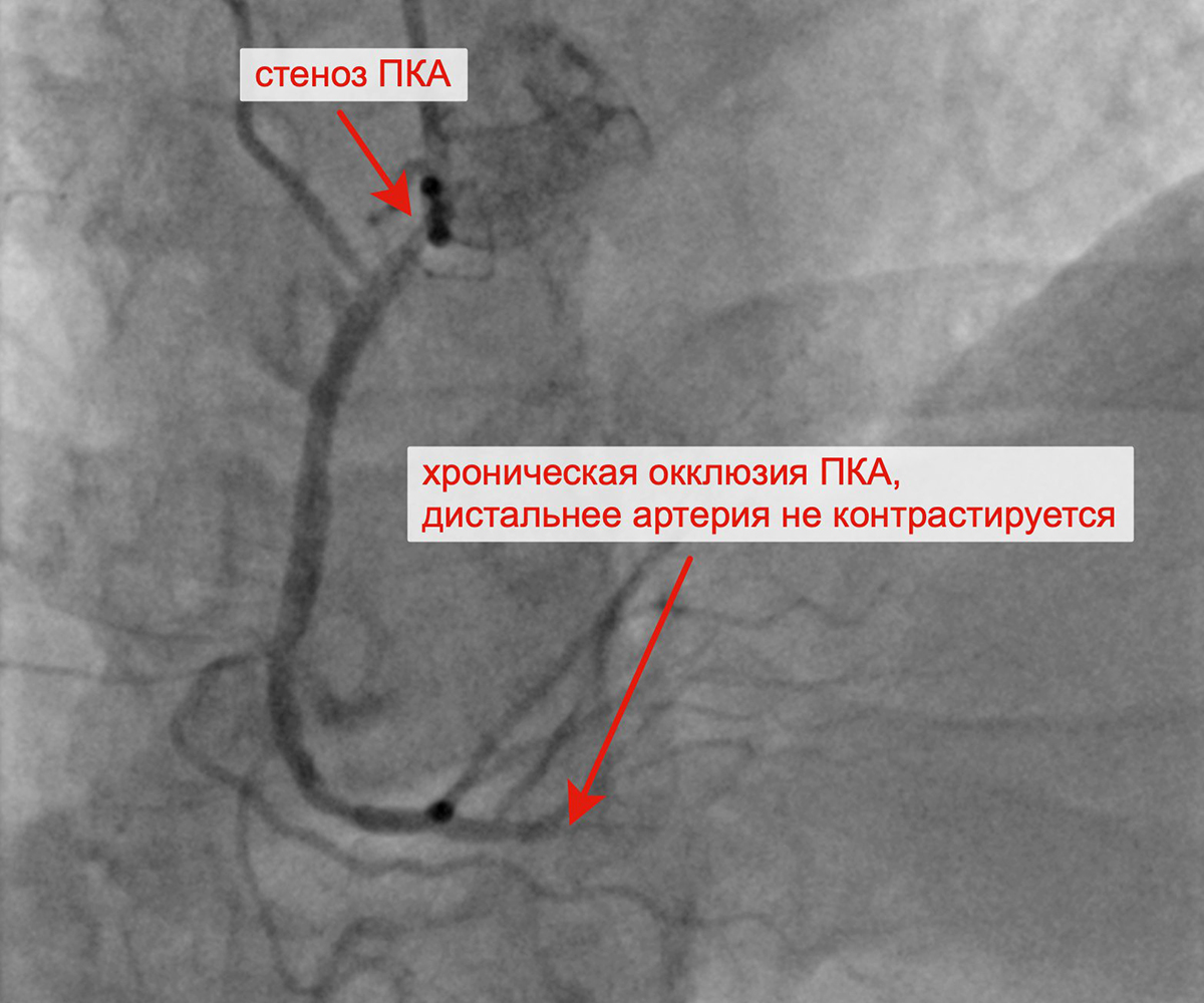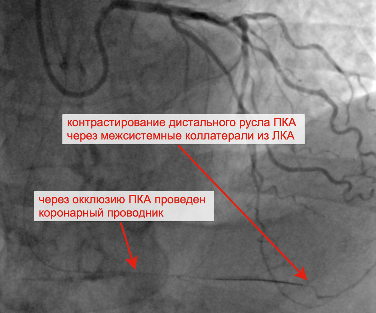 Хроническая окклюзия правой коронарной артерии Реканализация ПКА с контрастированием дистального русла